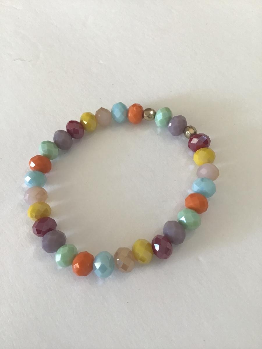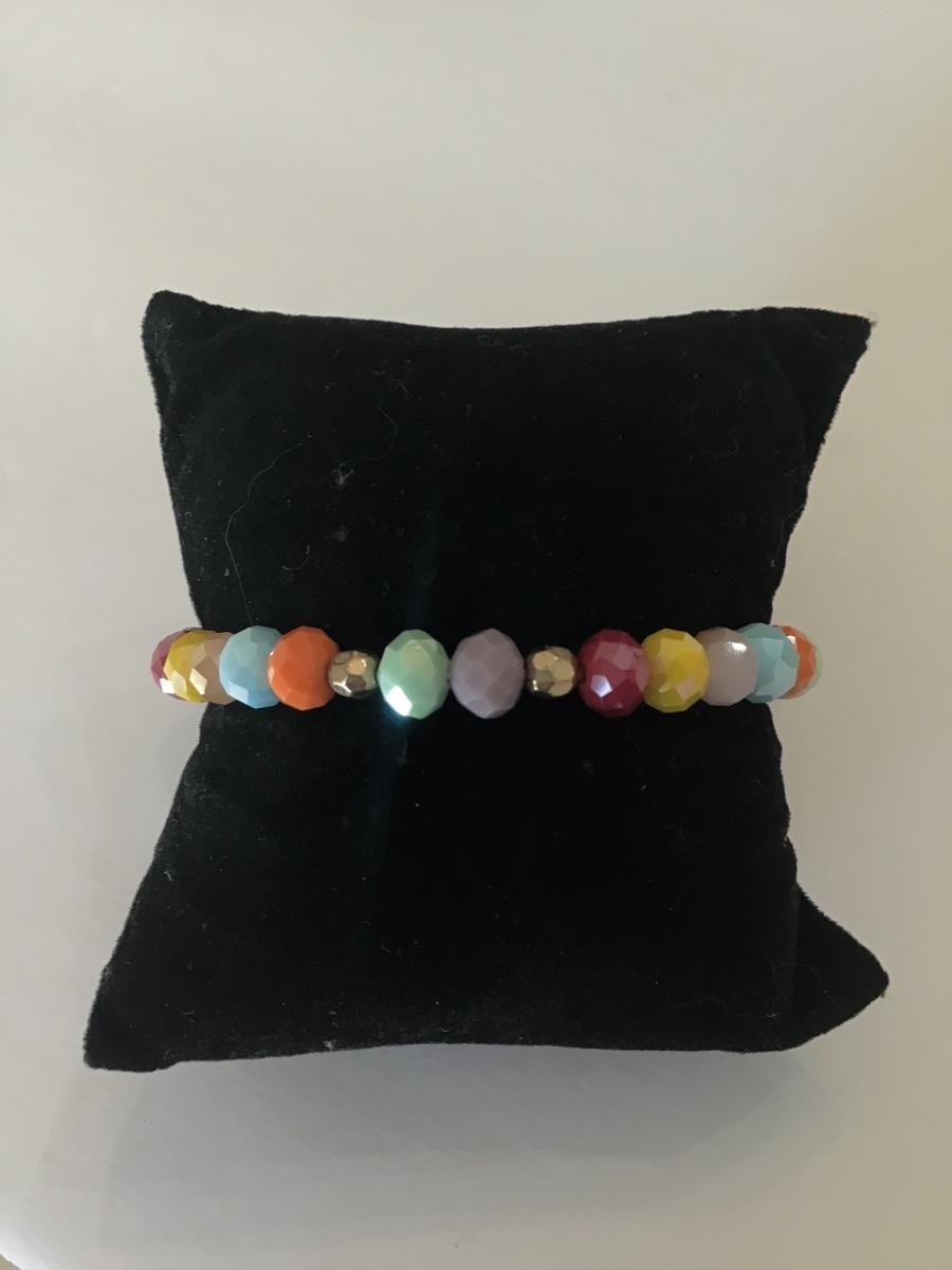 Multicolored faceted glass bead stretch bracelet