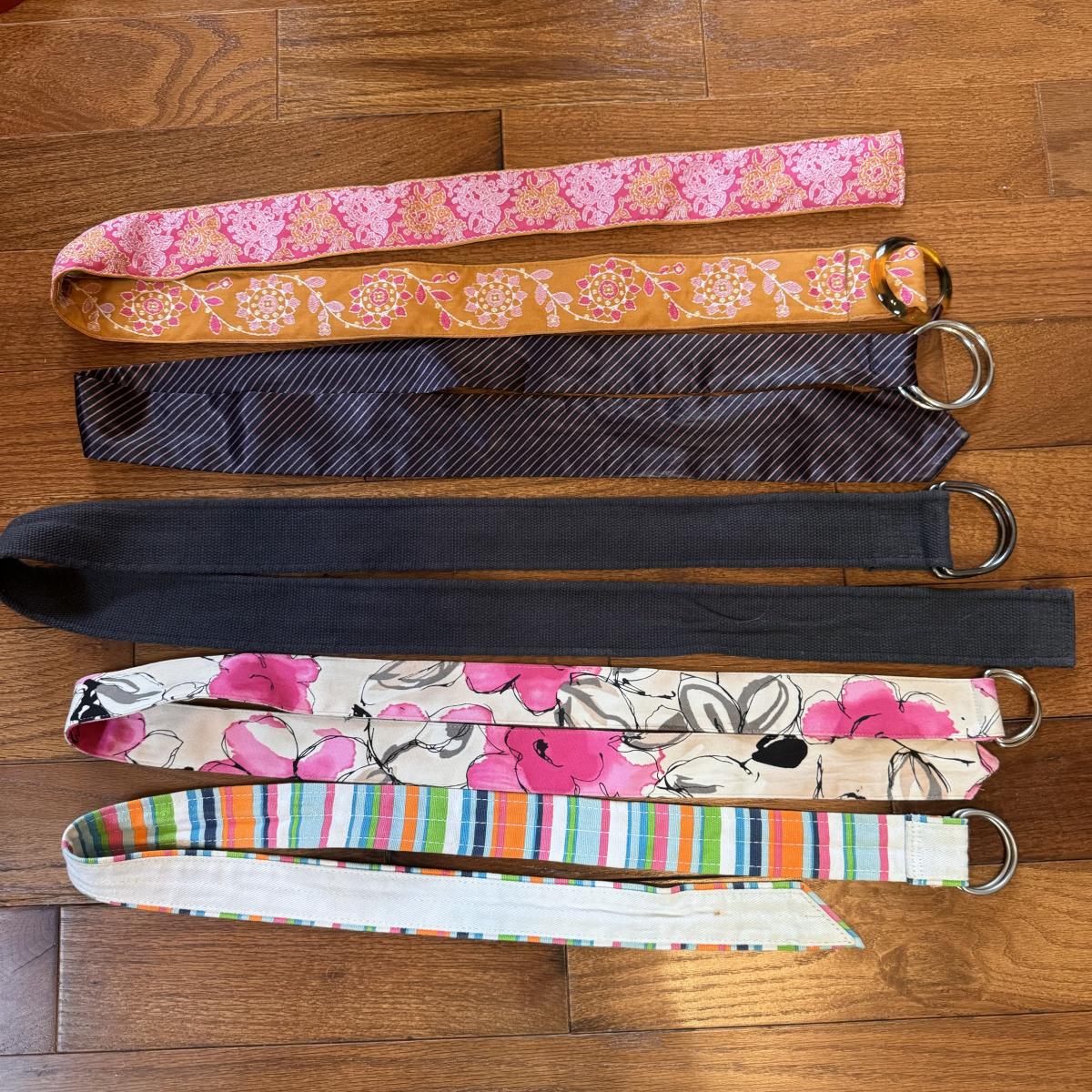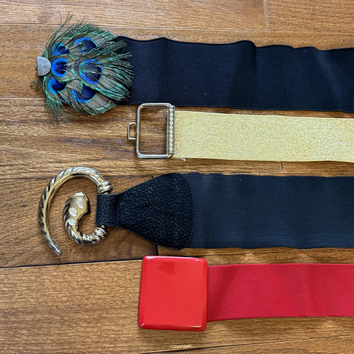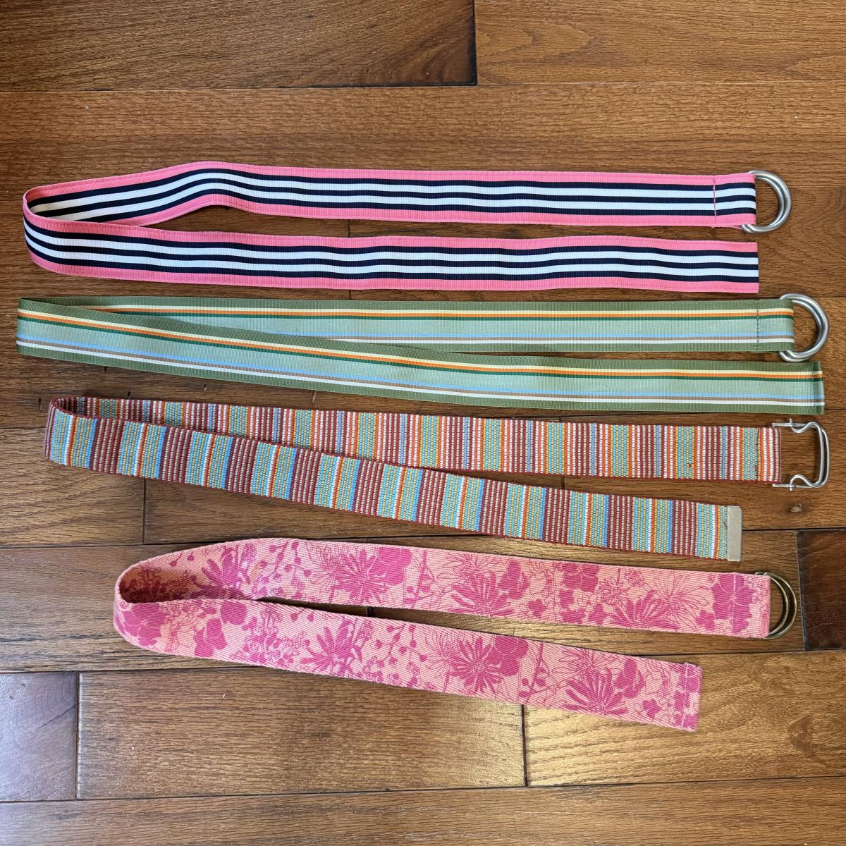 This lot includes over thirty different belts and three beaded purses. The blue purse has a small stain on the back. Most of the belts are not tagged, but those that are appear to be sized small to medium. Several of the belts are made with fabric, while others are made with leather or faux leather. Shipping available.