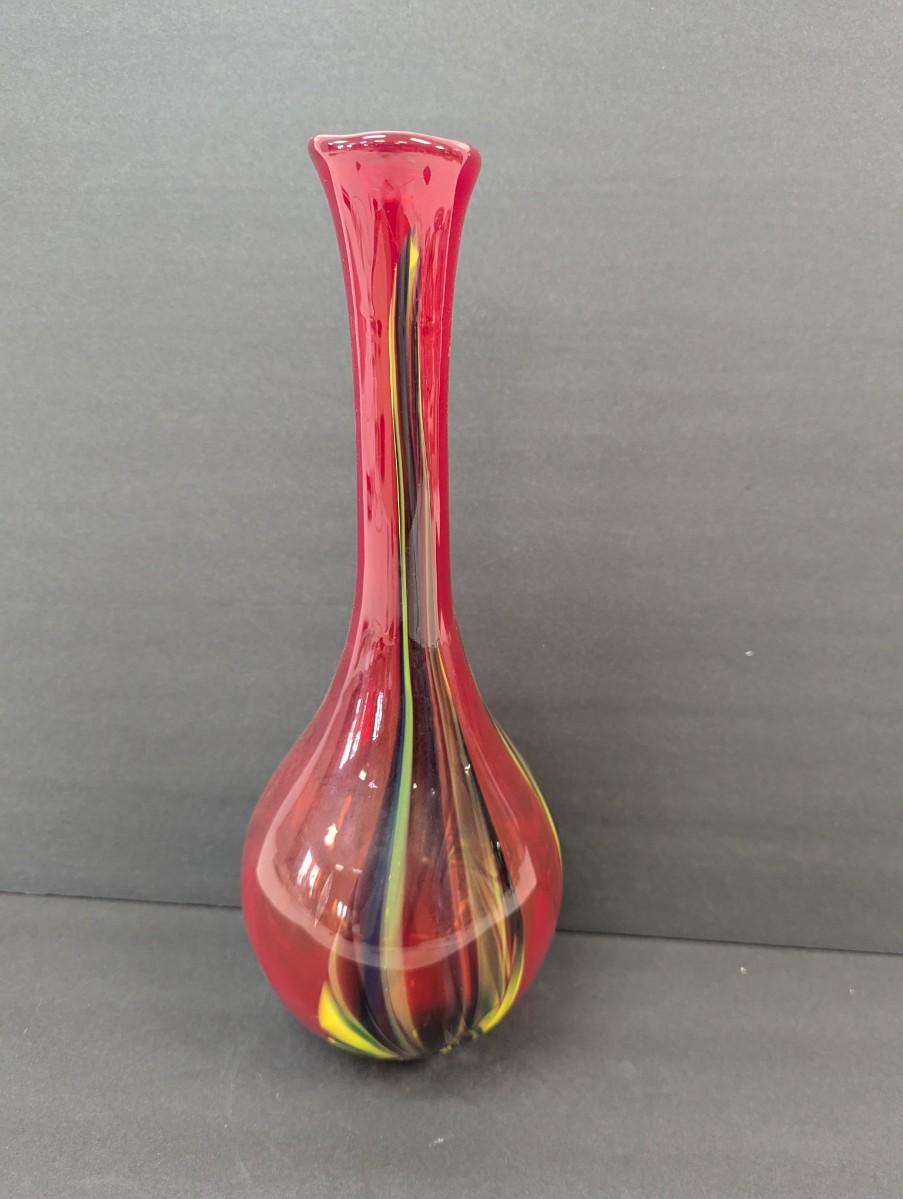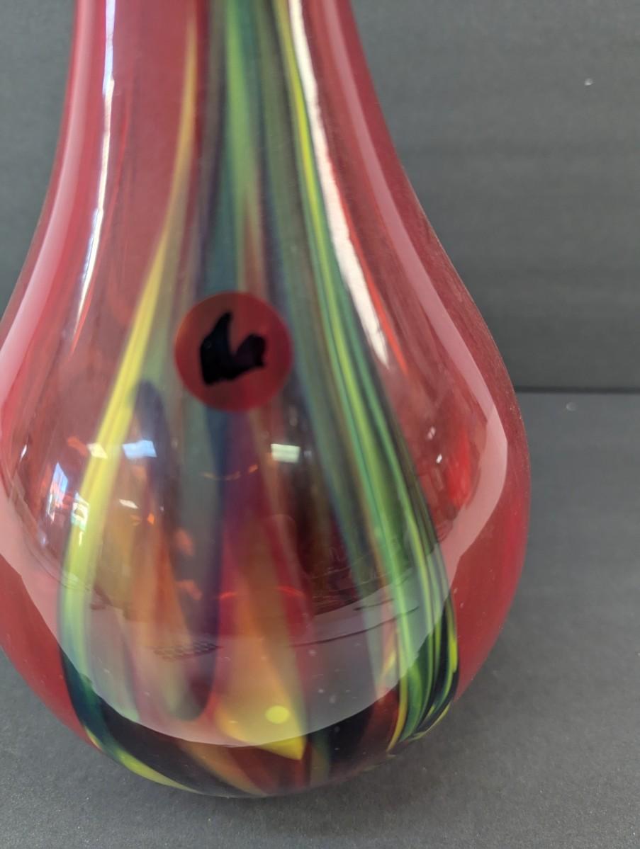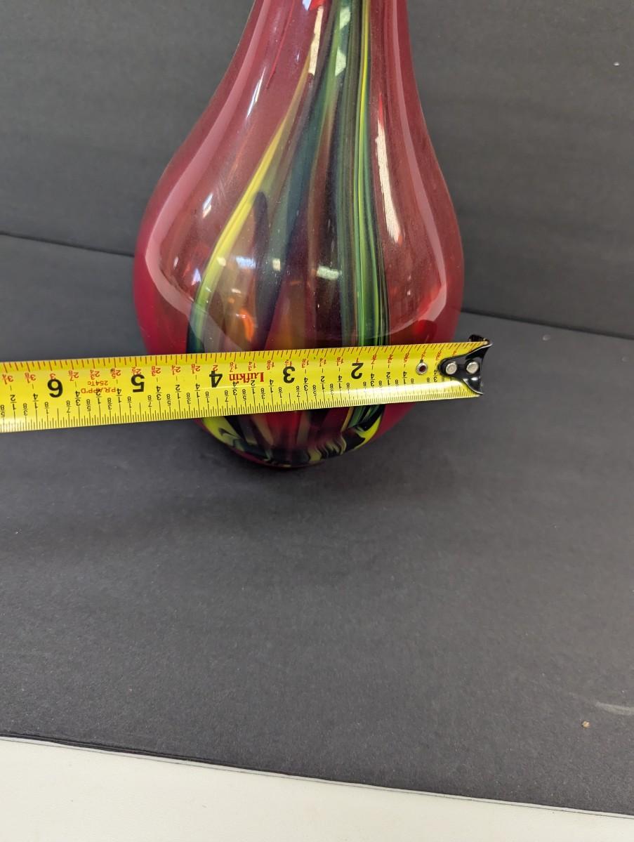 Multicolored Marbled Murano Style Glass Vase Approx 15 1/2" Tall #16