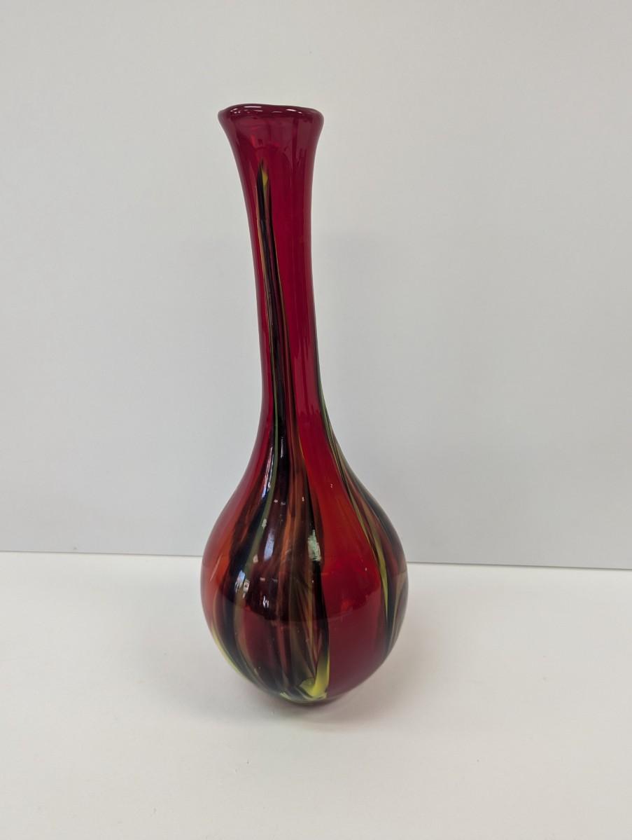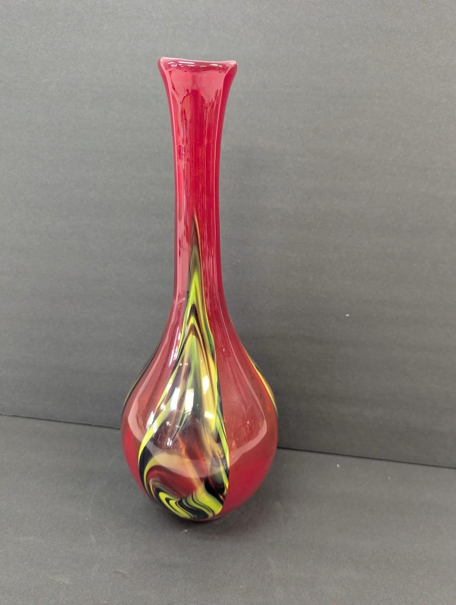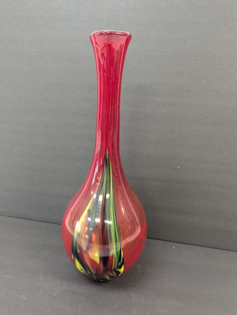 Multicolored Marbled Murano Style Glass Vase Approx 15 1/2" Tall #16