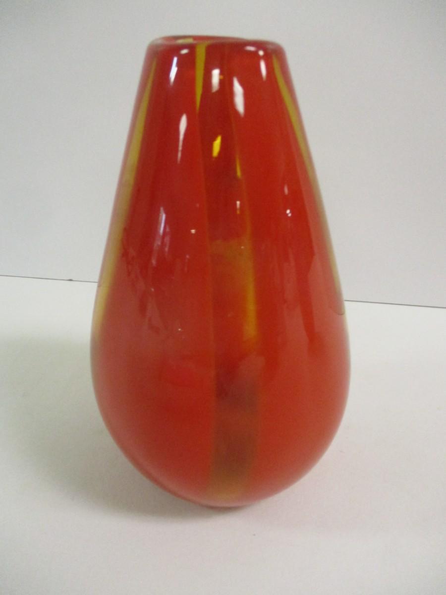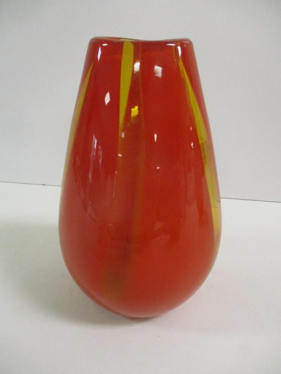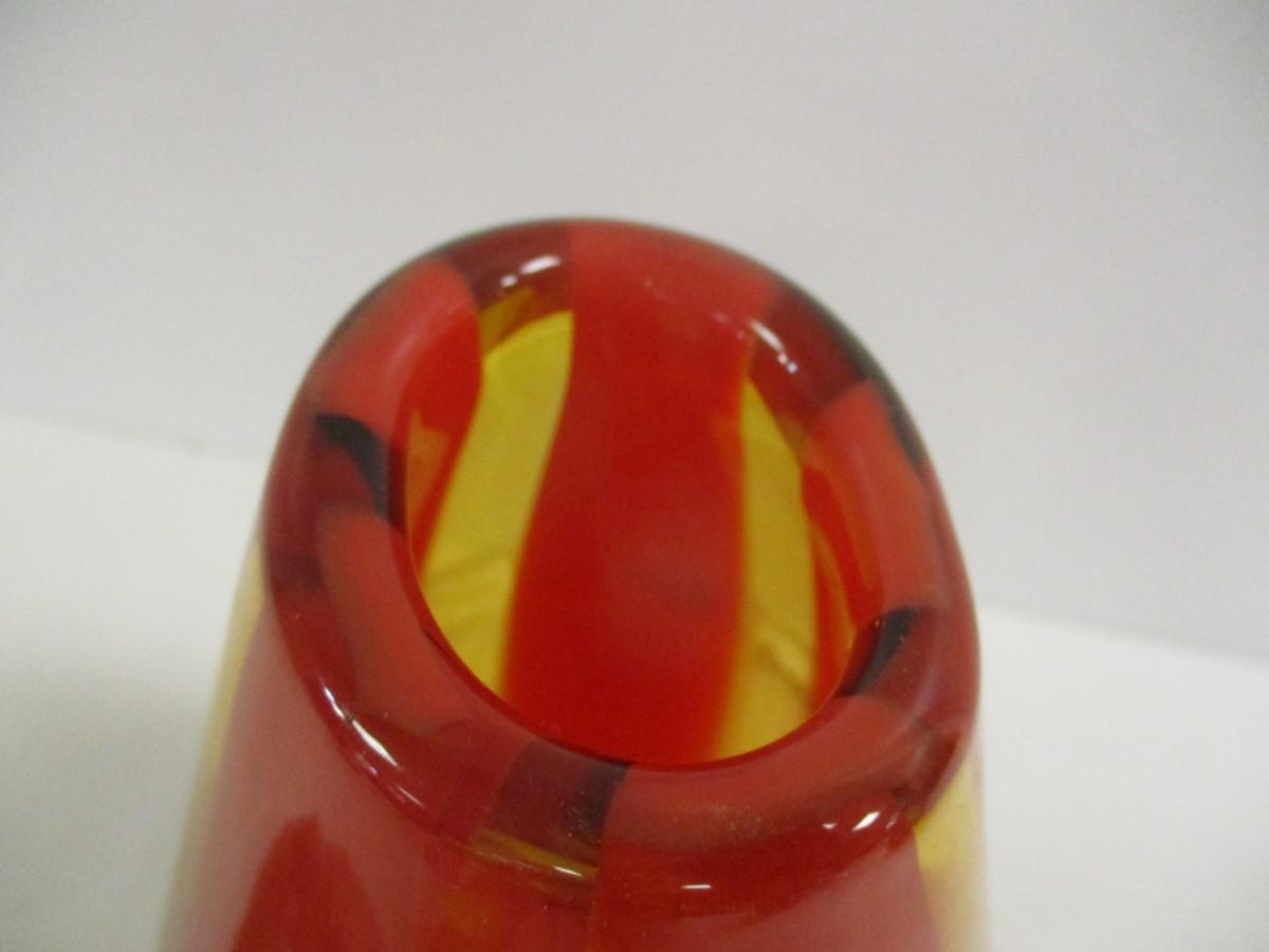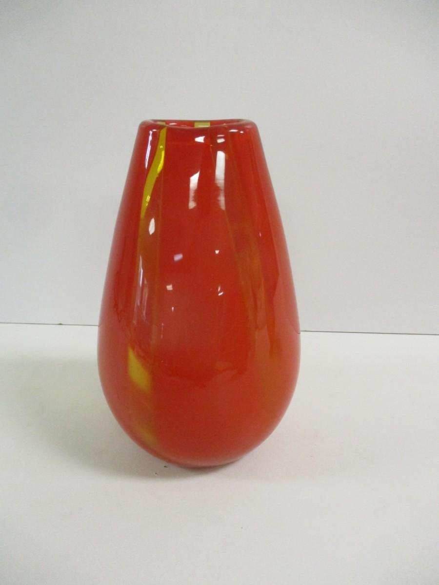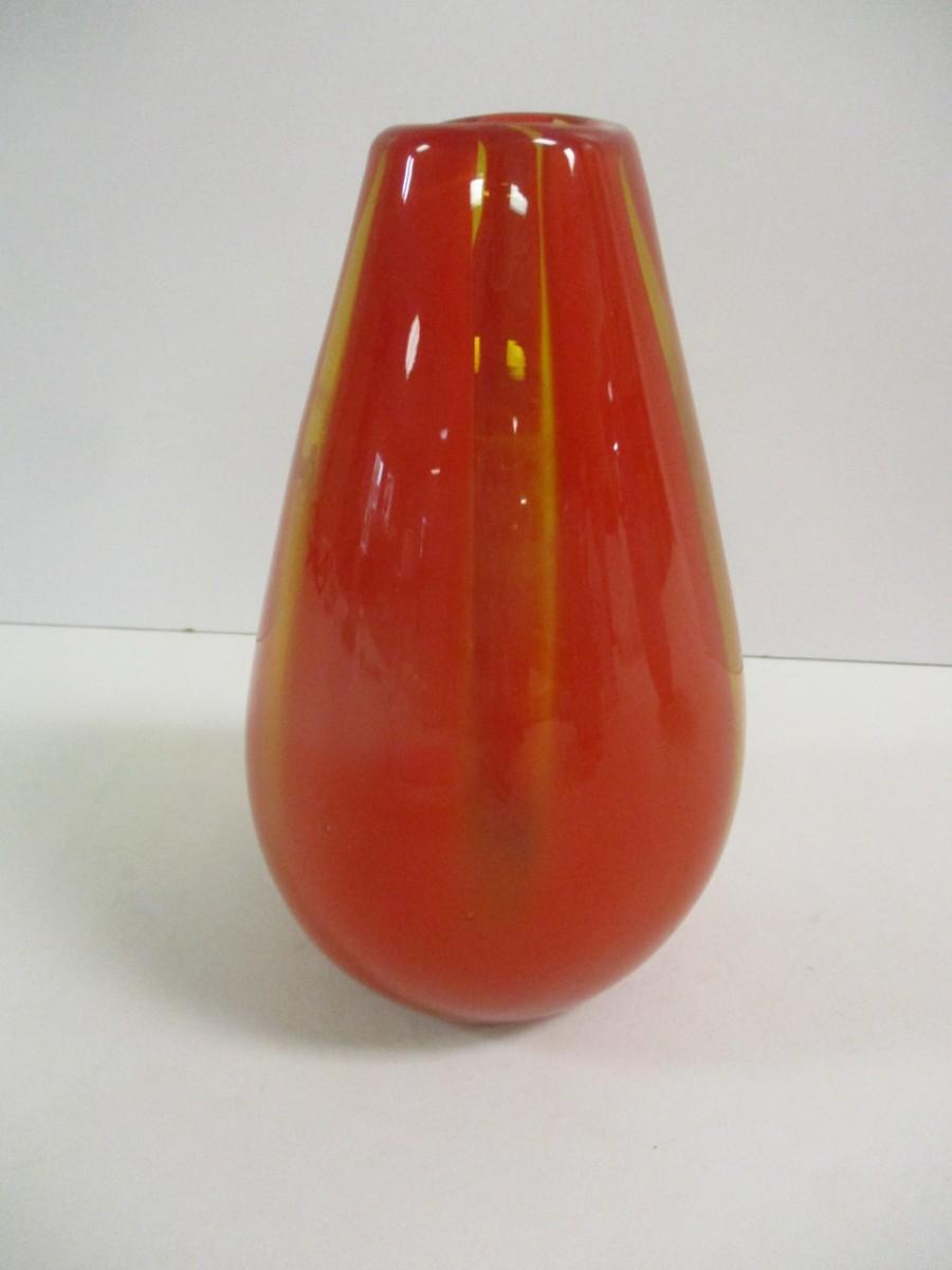 Multi-Colored Orange Yellow Glass Vase Approx 8 3/4" Tall #15