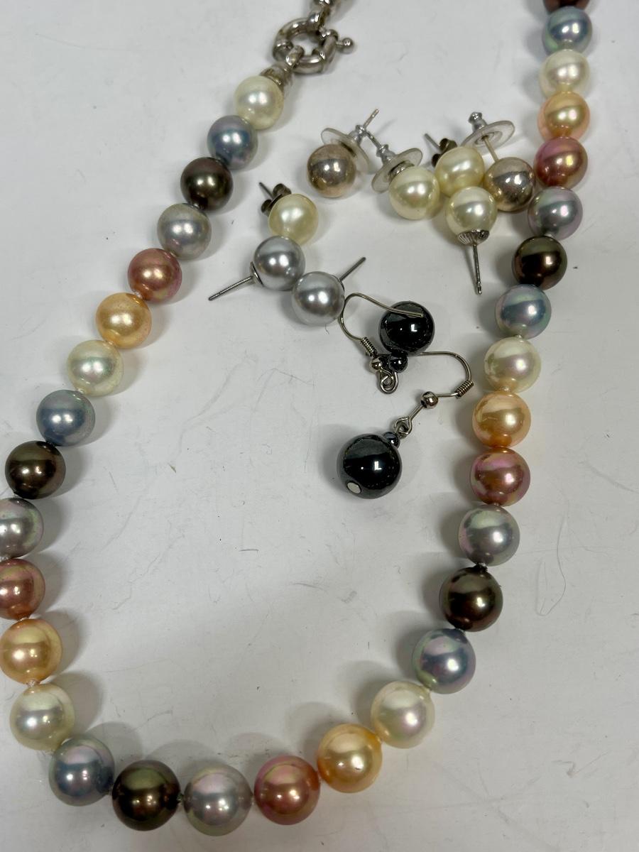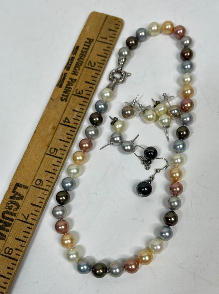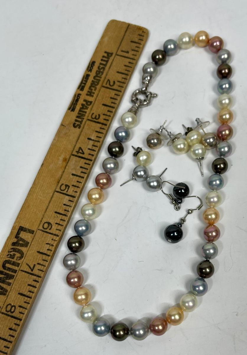 Multicolored Pearl Necklace & Earrings
