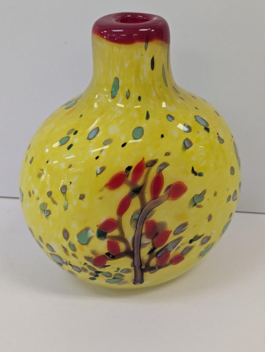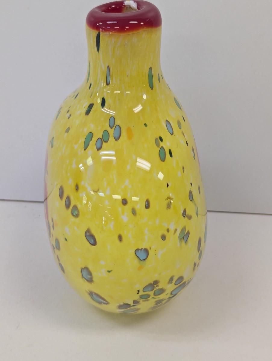 Multi-Colored Red Yellow Glass Vase Murano Style Apporx 8 1/4 Tall