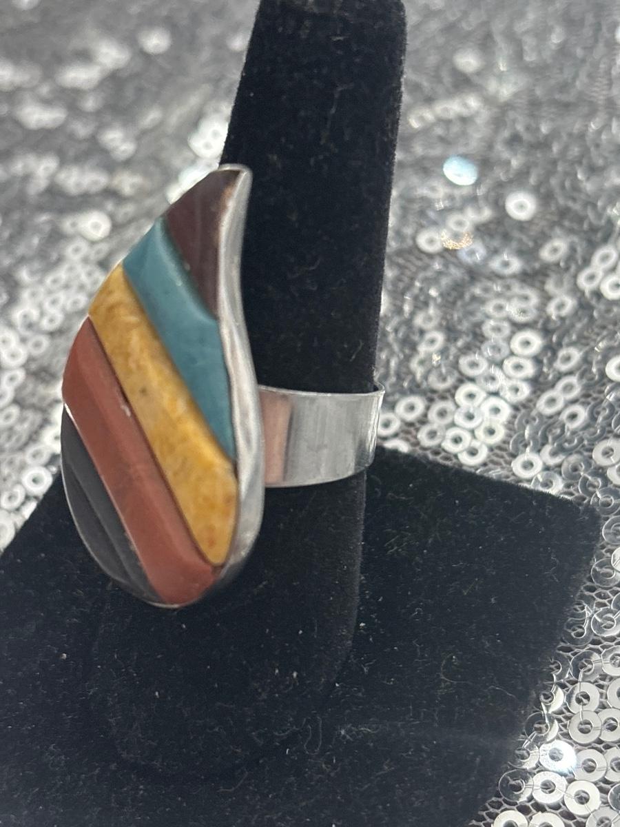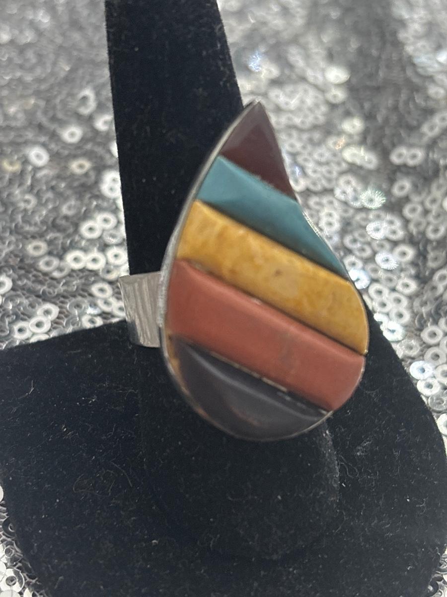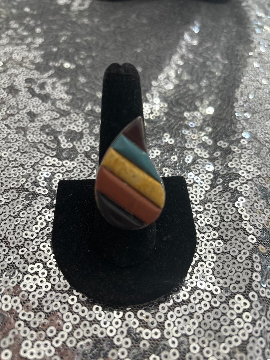 Multicolored teardrop adjustable ring