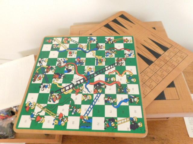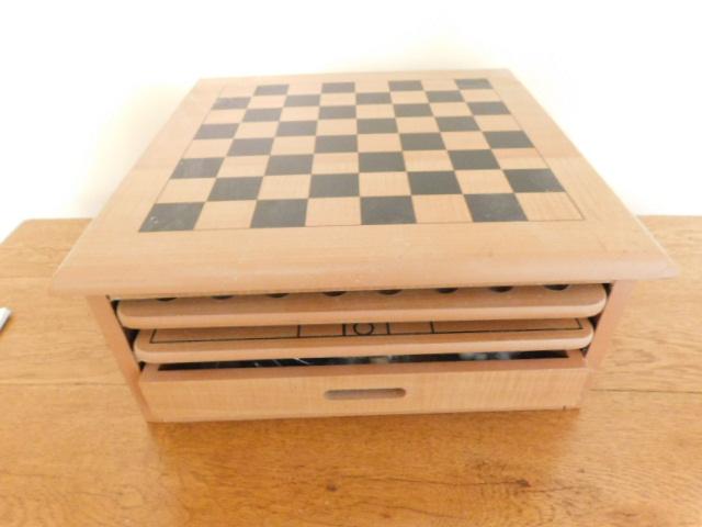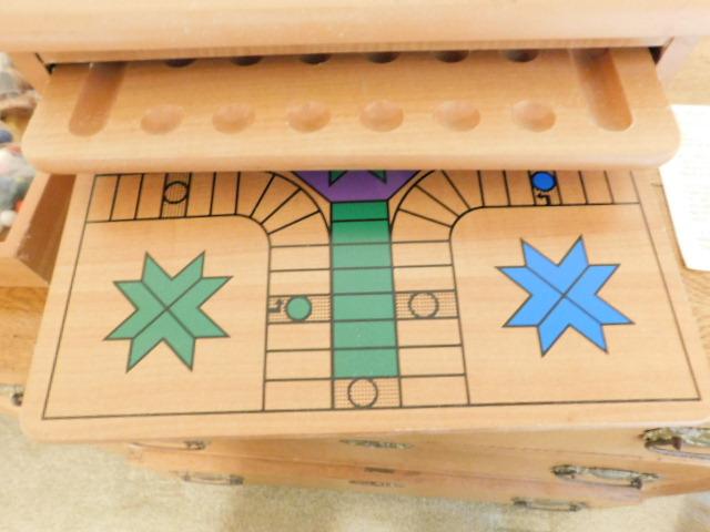 Multi-Game Board Wood Box and Pieces includes Chess, Backgammon, Chinese Checkers, Cribbage, Other