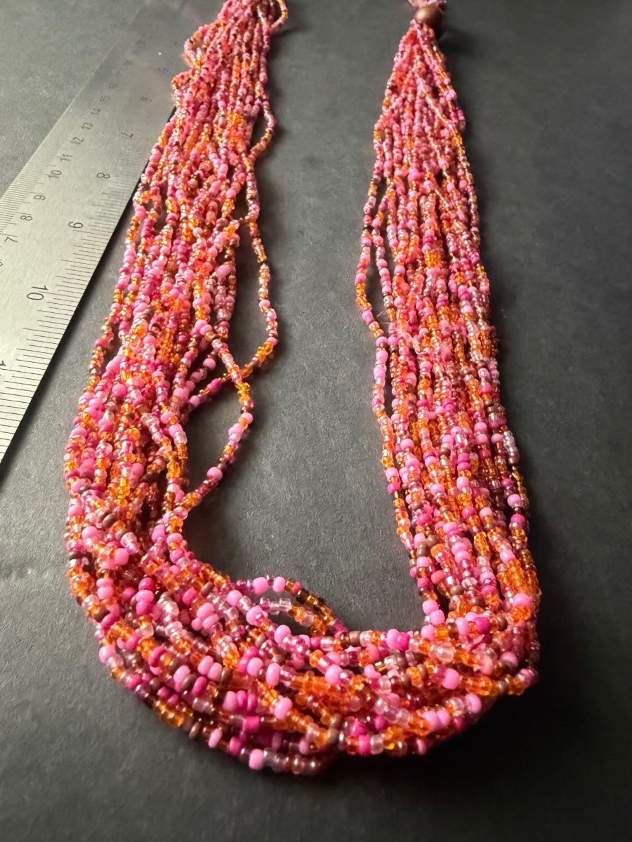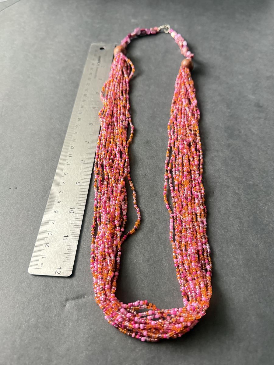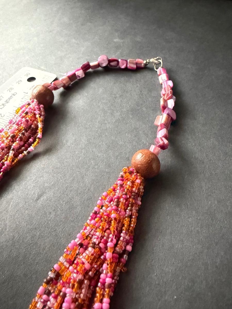 Multilayer pink beaded statement necklace with shell chips beautiful