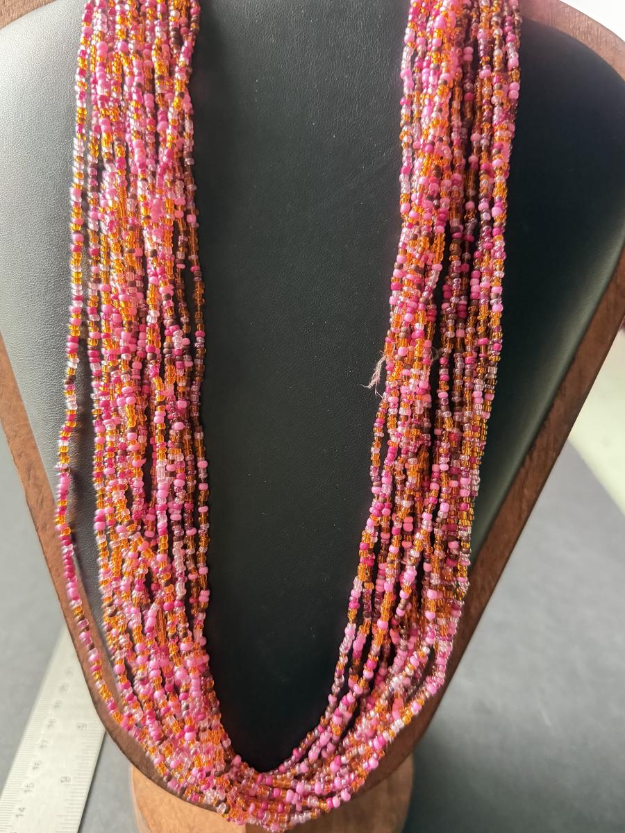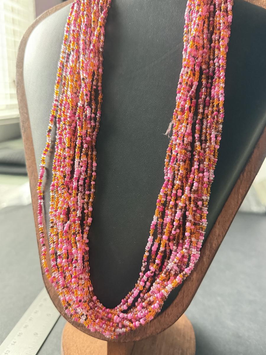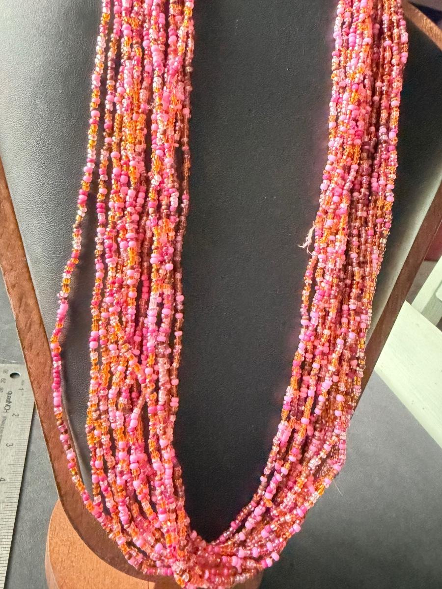 Multilayer pink beaded statement necklace with shell chips beautiful