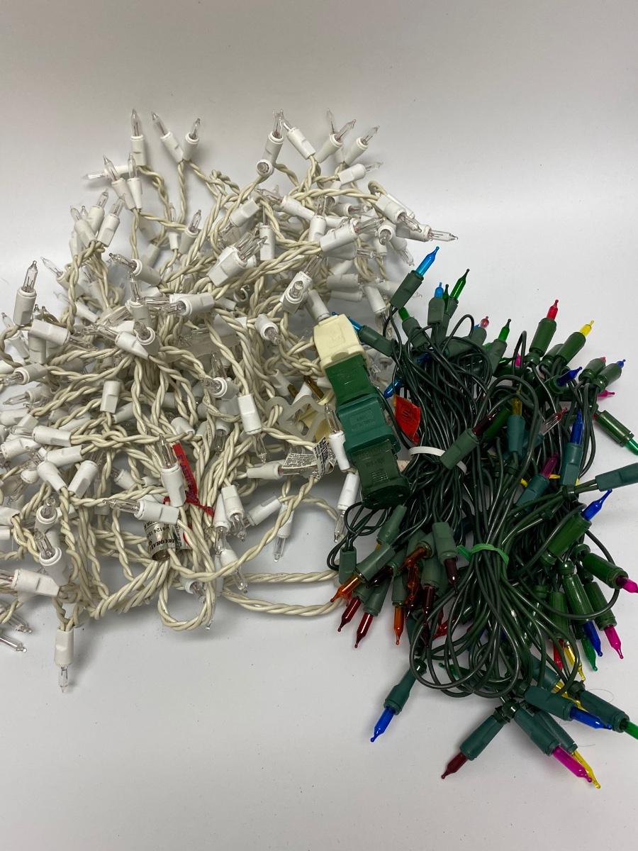 Multiple Strands of Small Christmas Lights Working White Multi-Colored