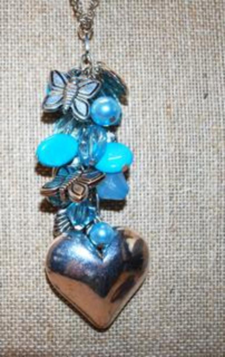 Hearts and Butterflies with Turquoise Color Accent Stones Necklace 36" L
