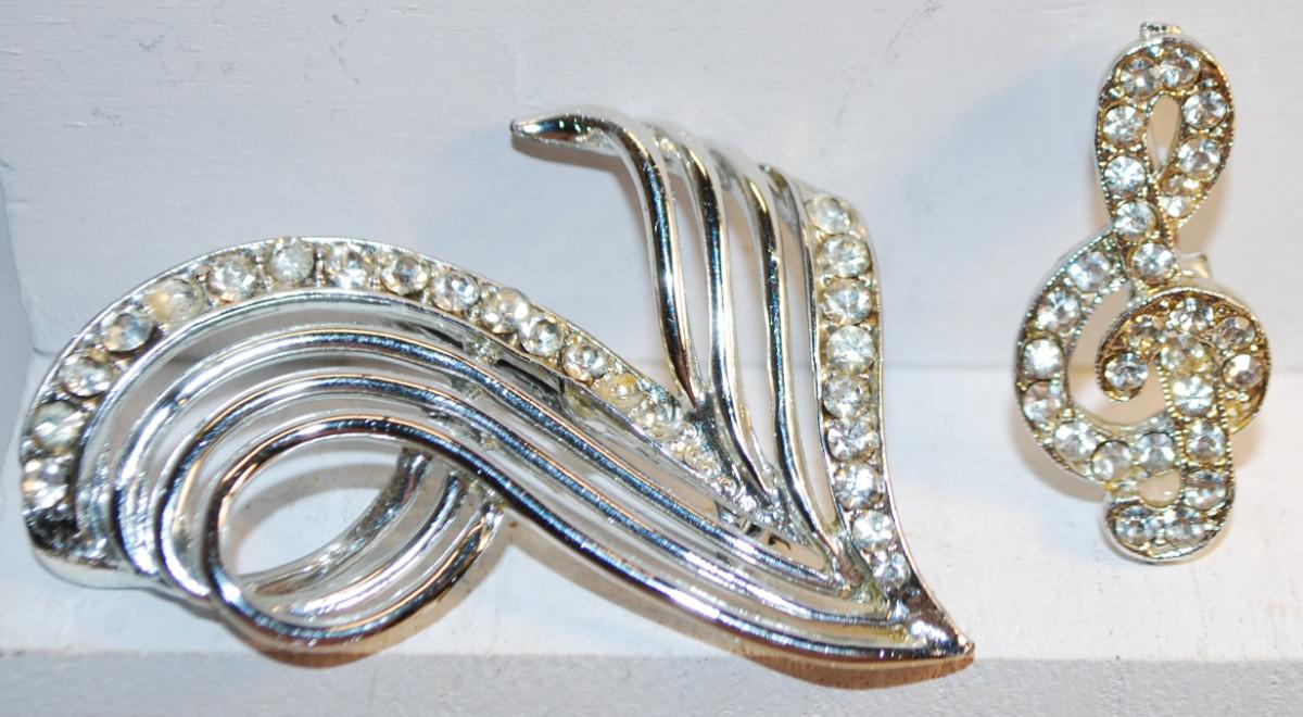 "G-Clef" Pin Set with Lots of Stones and Shine 1-2" 2 Pcs.