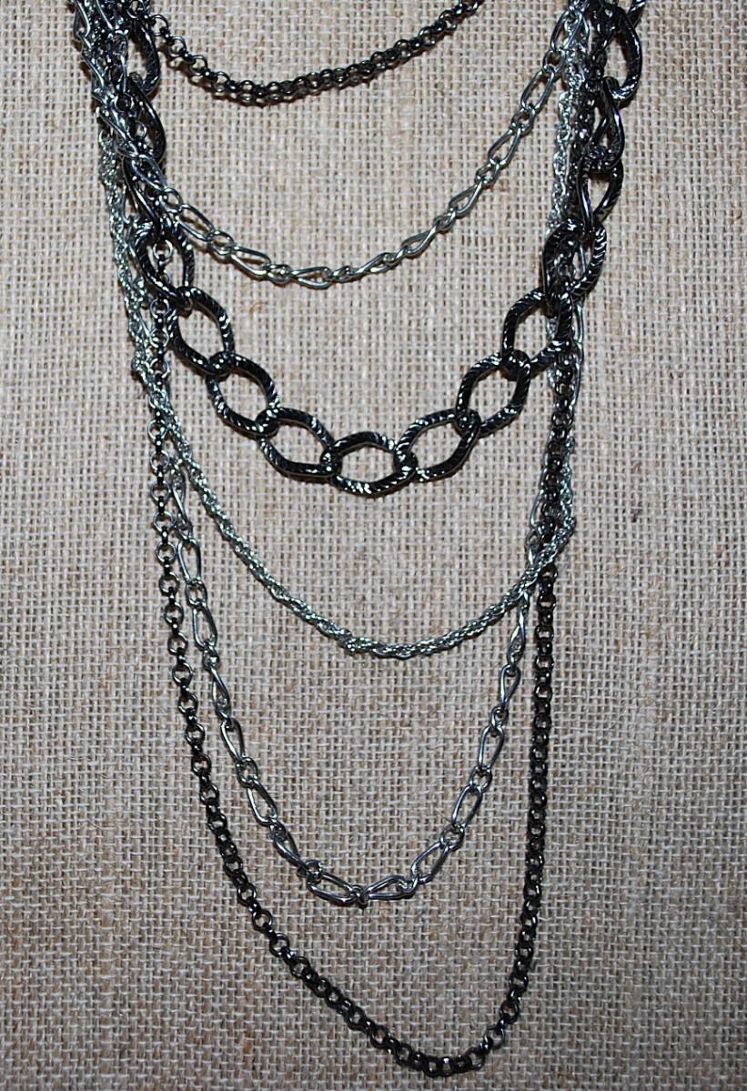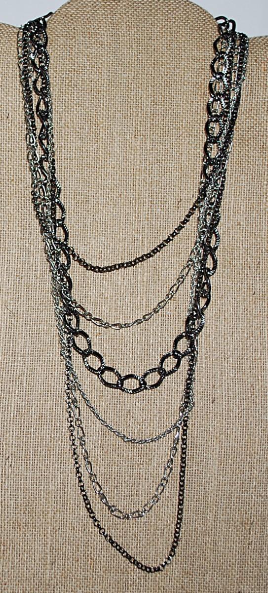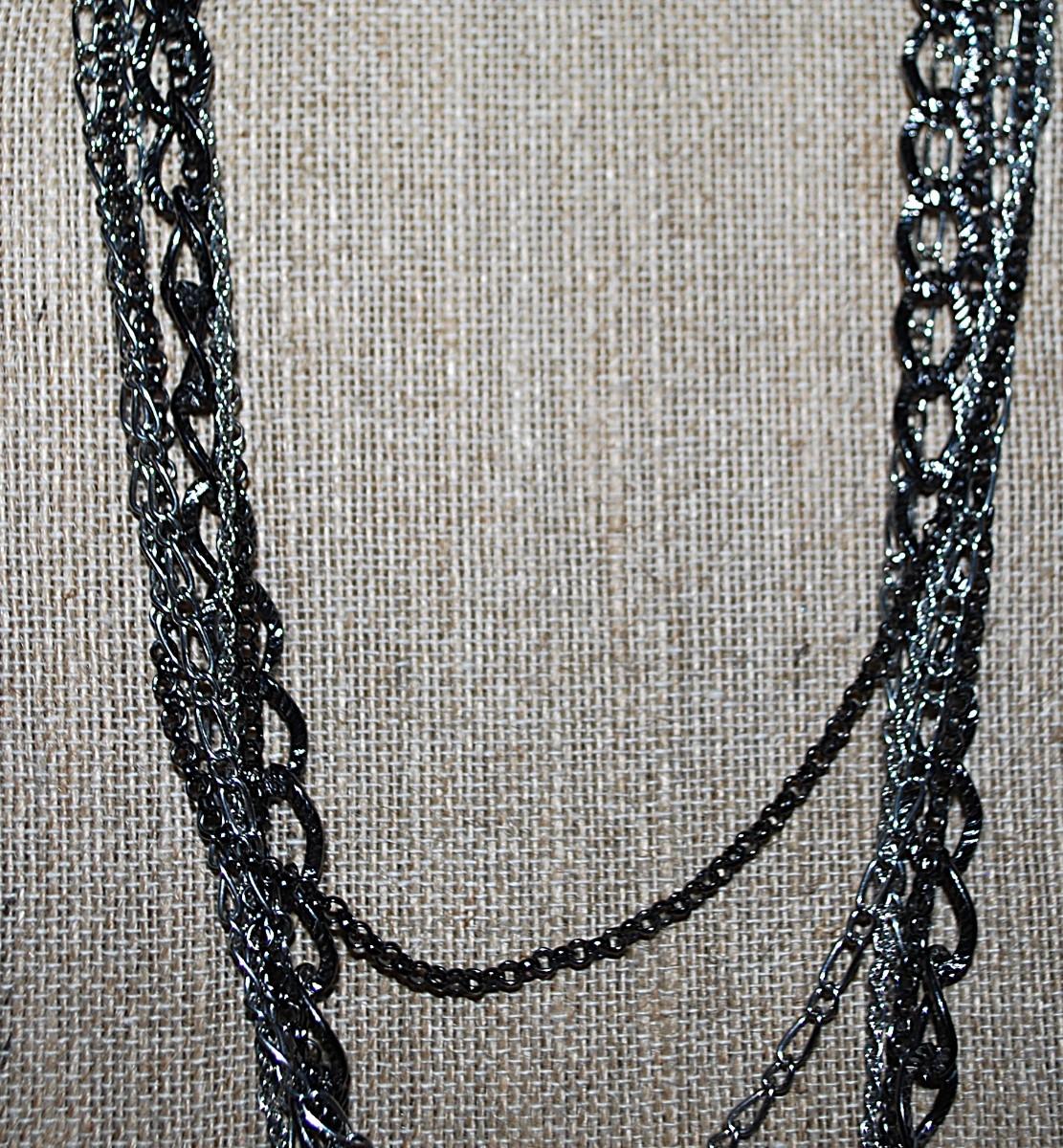 Multi-Strand Black & Silver Colored NECKLACE with Different Loop Styles and Lobster Clasp 28" L