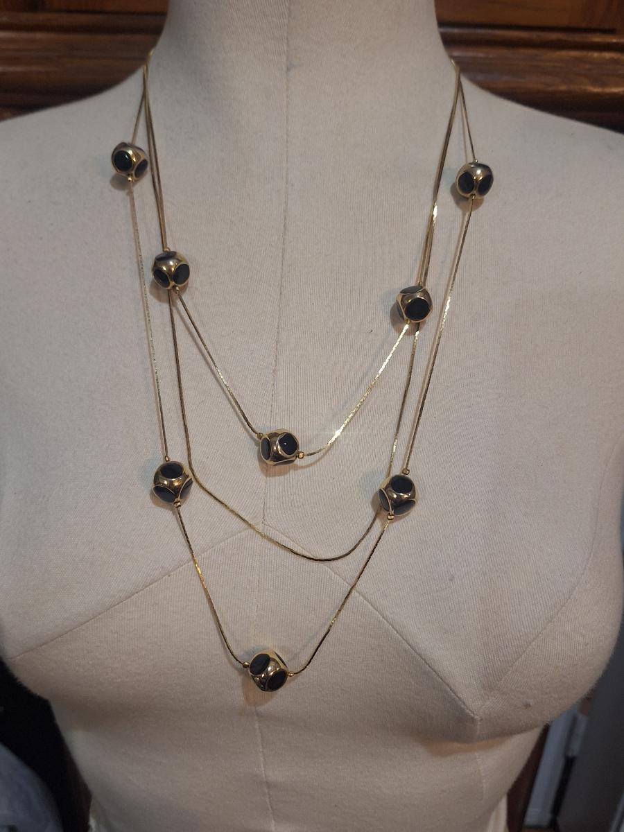 multi-strand gold-plated cobra chain necklace with black faux onyx cabochons.