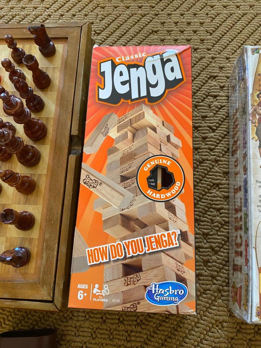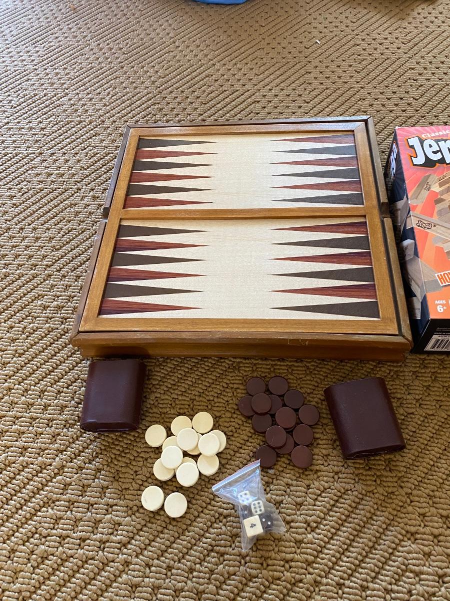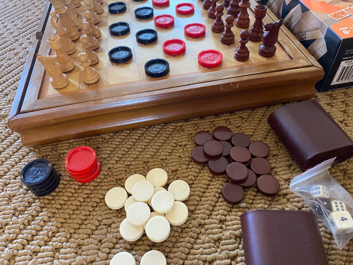 MULTI-WOODEN GAME BOARD- CHESS, CHECKERS, BACKGAMMON ALSO A TICKET TO RIDE AND JENGA