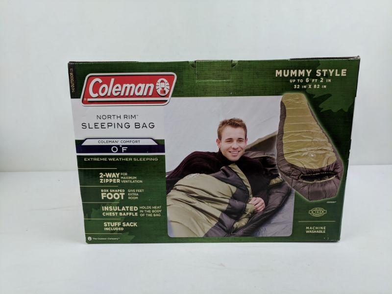 Mummy Style North Rim Sleeping Bag, Up to 6' 2", Coleman Comfort 0 Degree F - New
