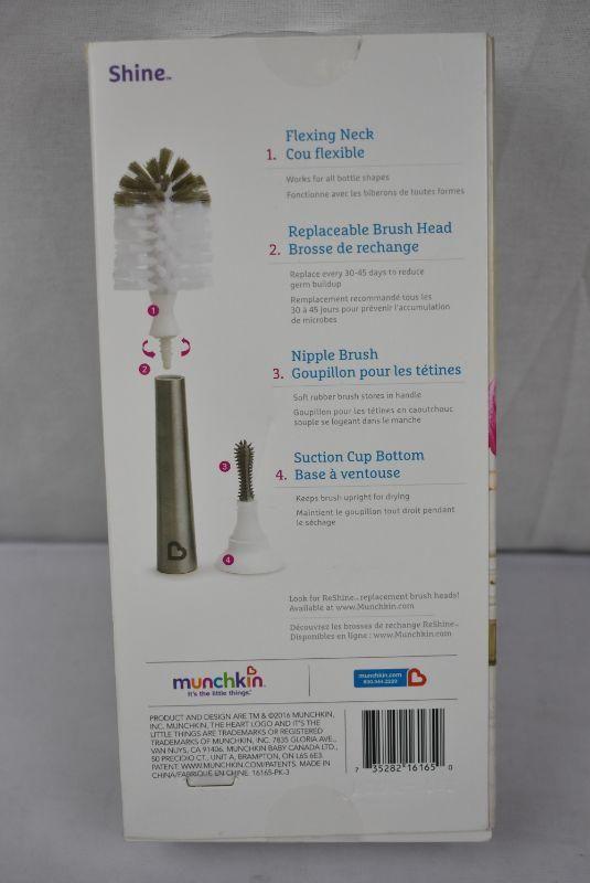 Munchkin Shine Stainless Steel Bottle Brush & Refill Brush Head - New