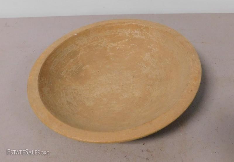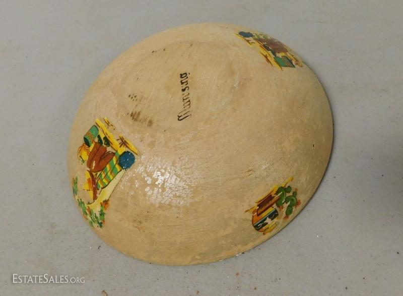 Munising Dough Bowl with painted sides. Wear to the paint.