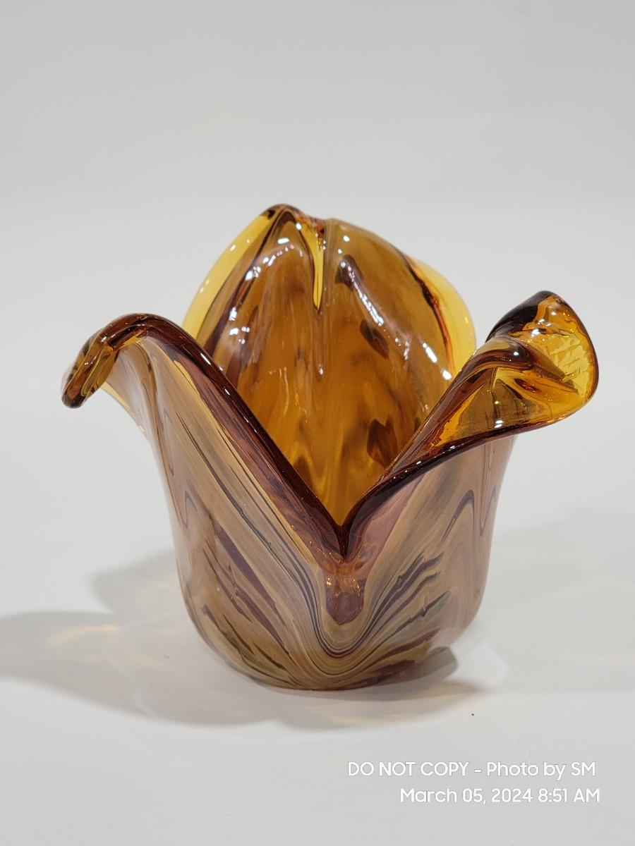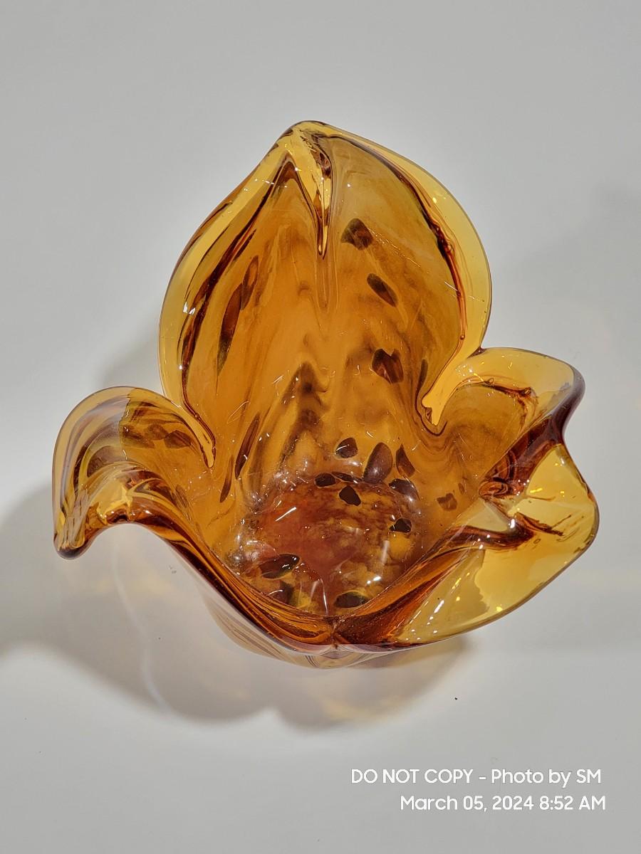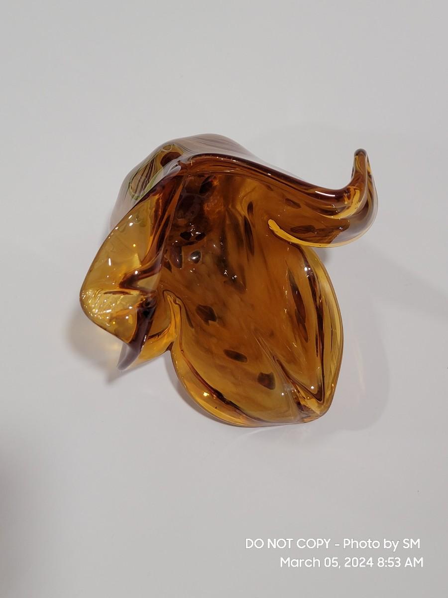 Beautiful art glass, in amber color with some animal instict. Reminds me of a tiger - bold and powerful. No chips no cracks noted.