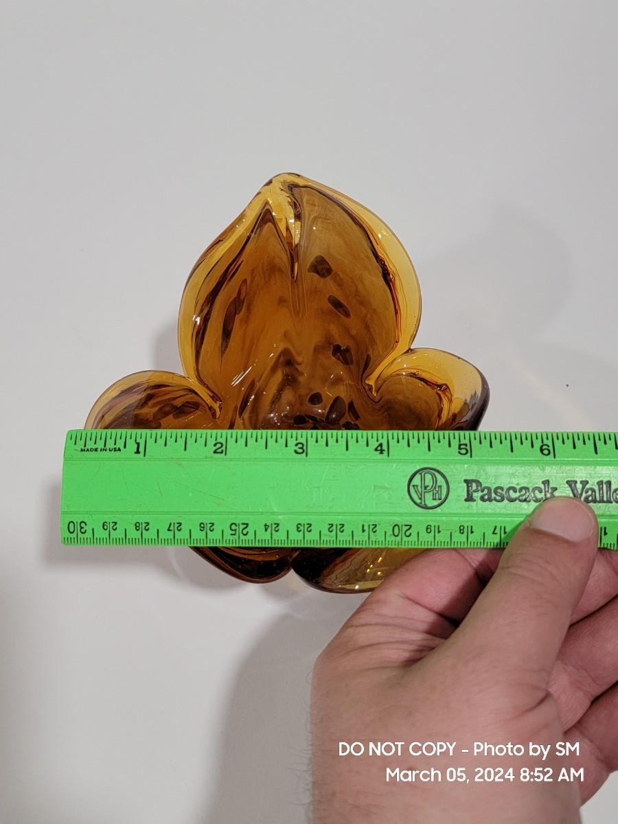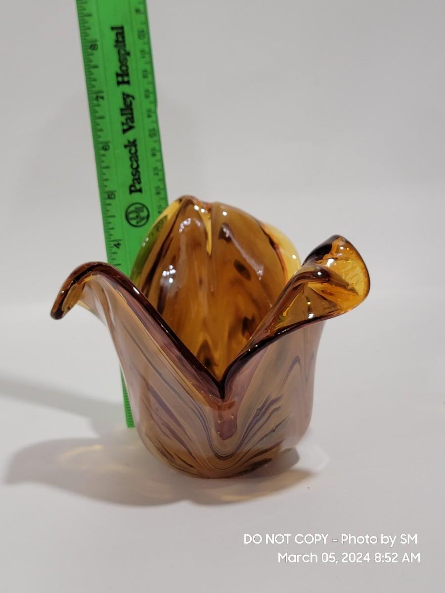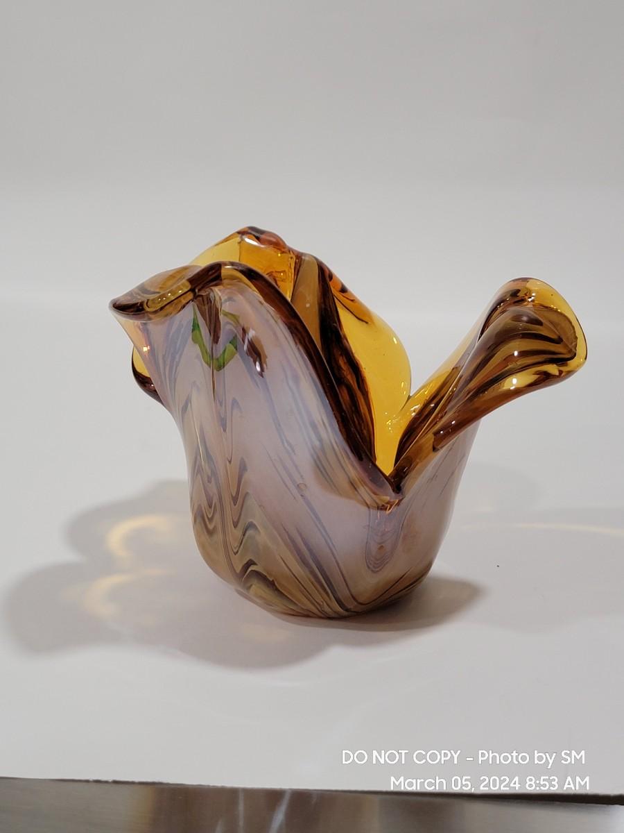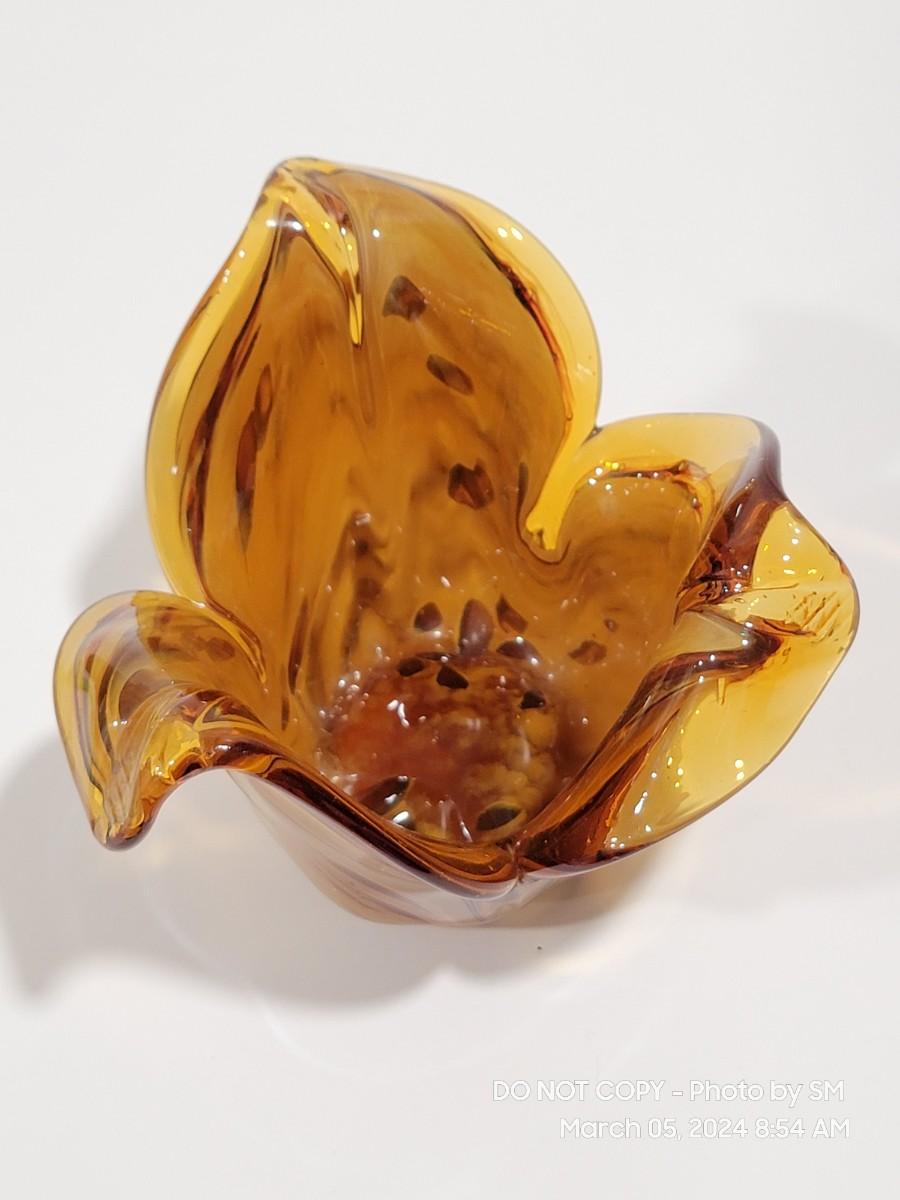 Beautiful art glass, in amber color with some animal instict. Reminds me of a tiger - bold and powerful. No chips no cracks noted.