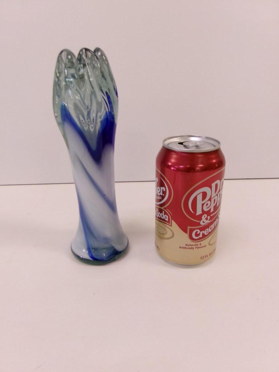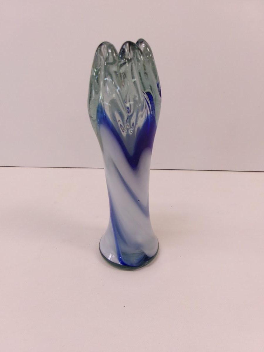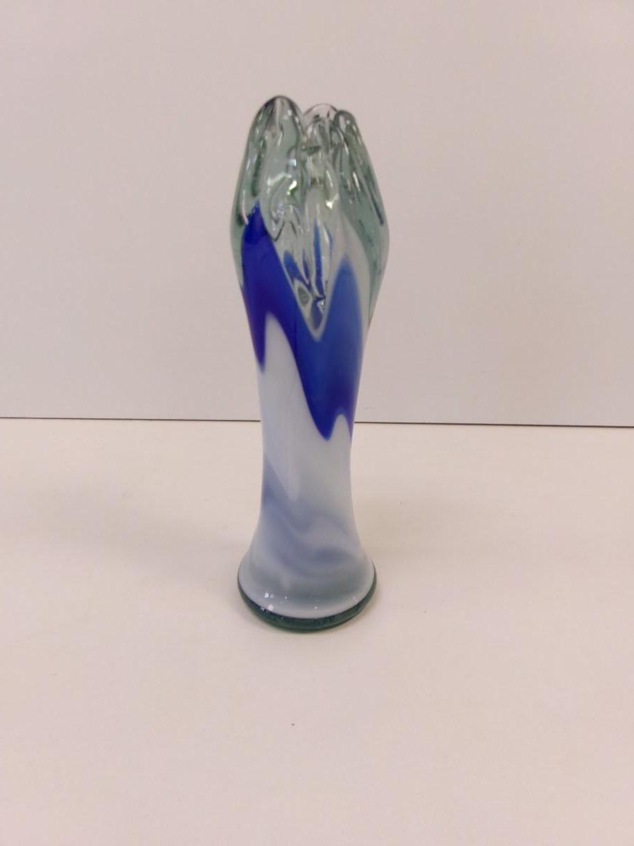 Murano Blown Art Glass Blue & Frosted Swirl Approx 8" Tall #34