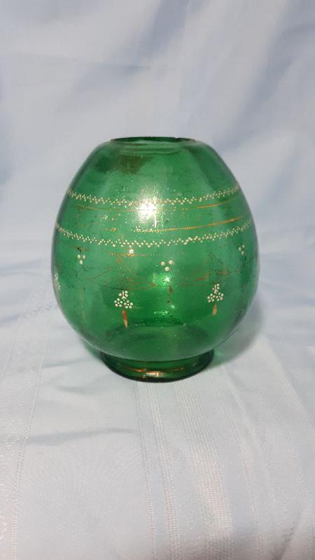 Murano egg shaped vase with gold and white paint, 6"H, vintage