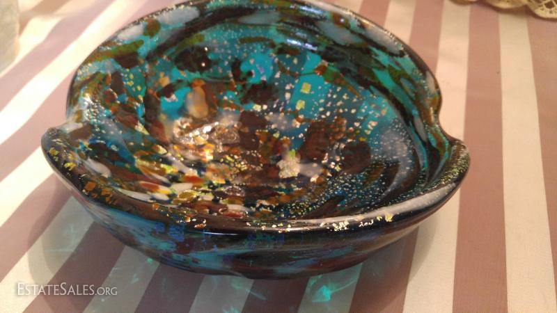 Color is sea blue with Gold & Silver flecks! Gorgeous authentic!