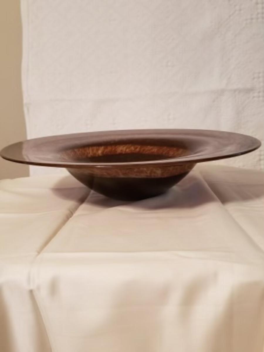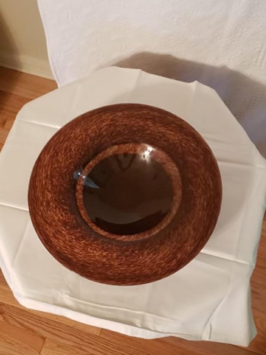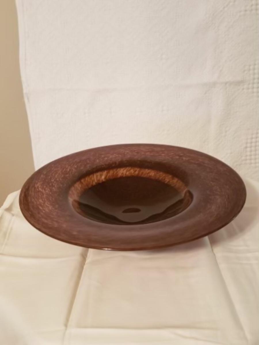 Murano glass center bowl. Brown swirl.  14"W 3"H. Excellent Condition