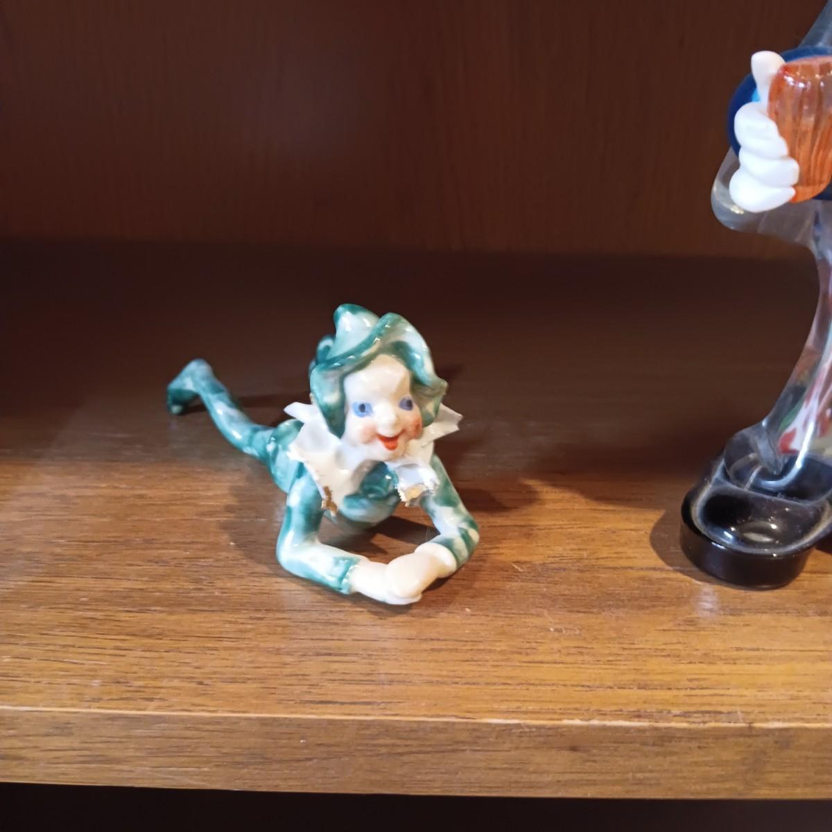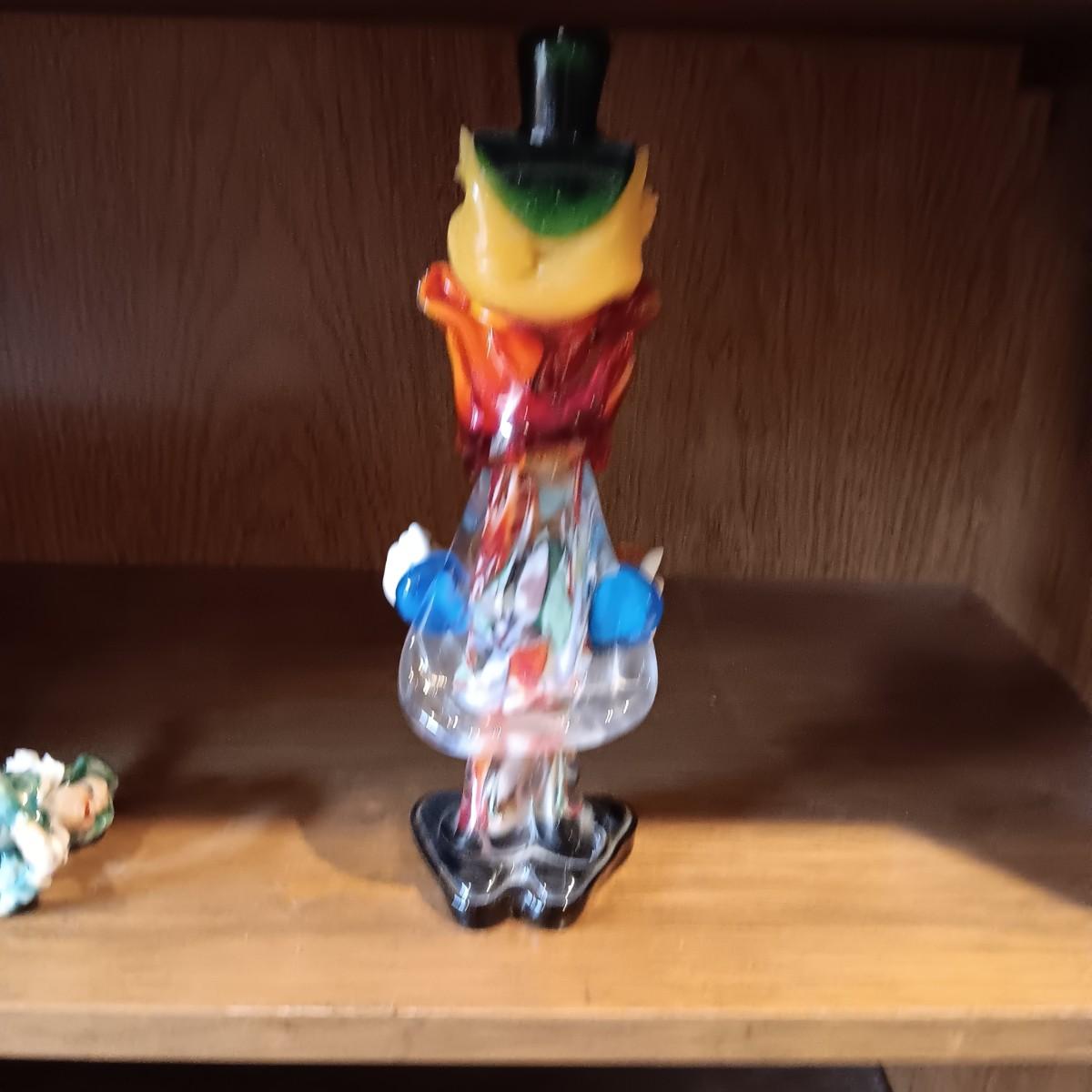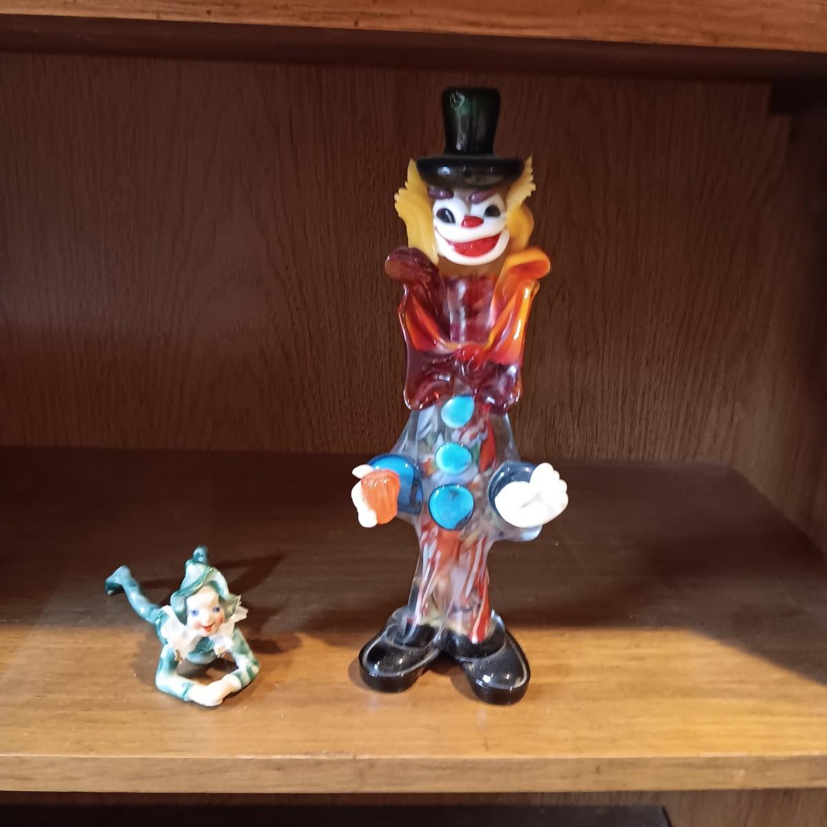 MURANO? GLASS CLOWN AND A CERAMIC CAR MARKED OCCUPIED JAPAN