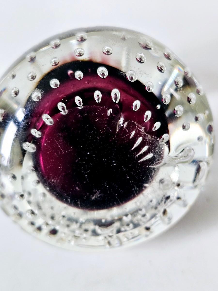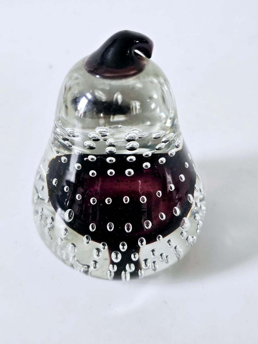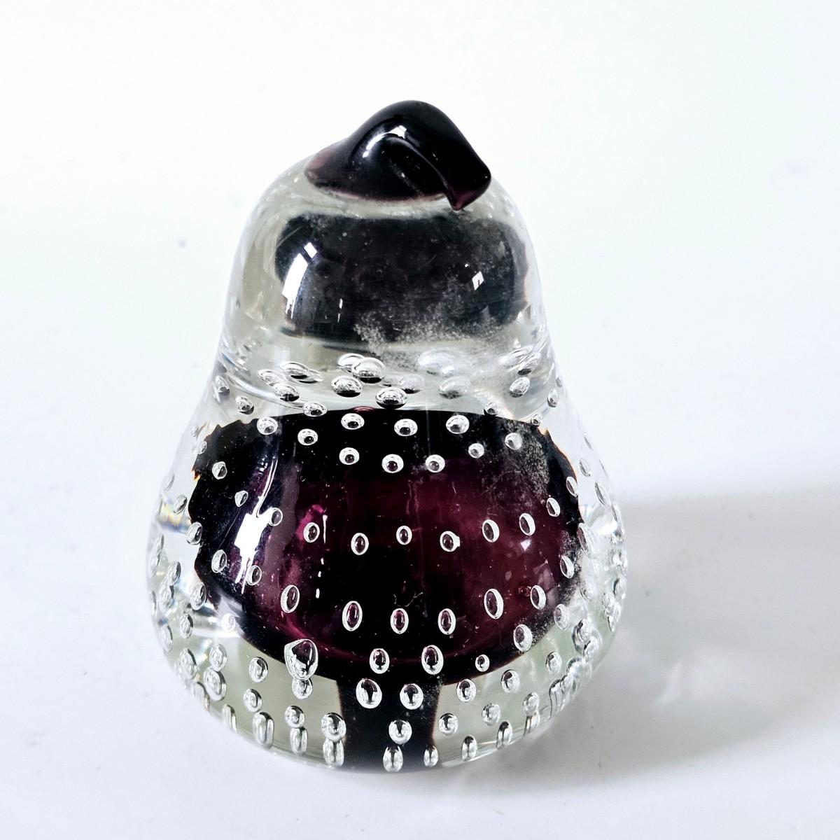 Murano Glass Paper Weight Aubergine Pear Controlled Bubble