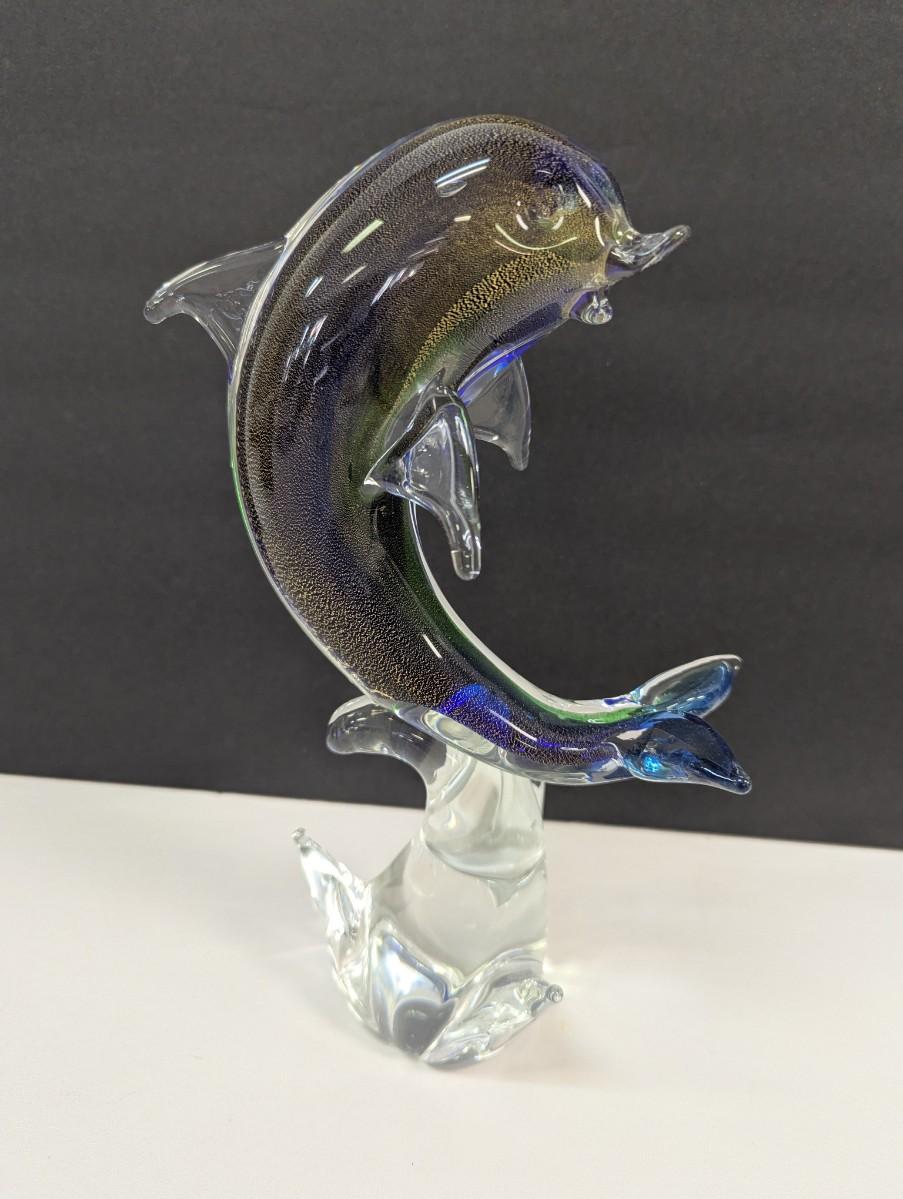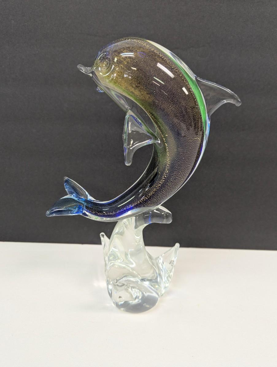 Murano Hand Blown Dolphin Art Glass Approx 11" Tall