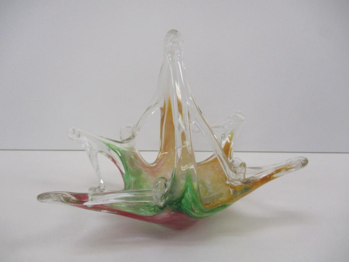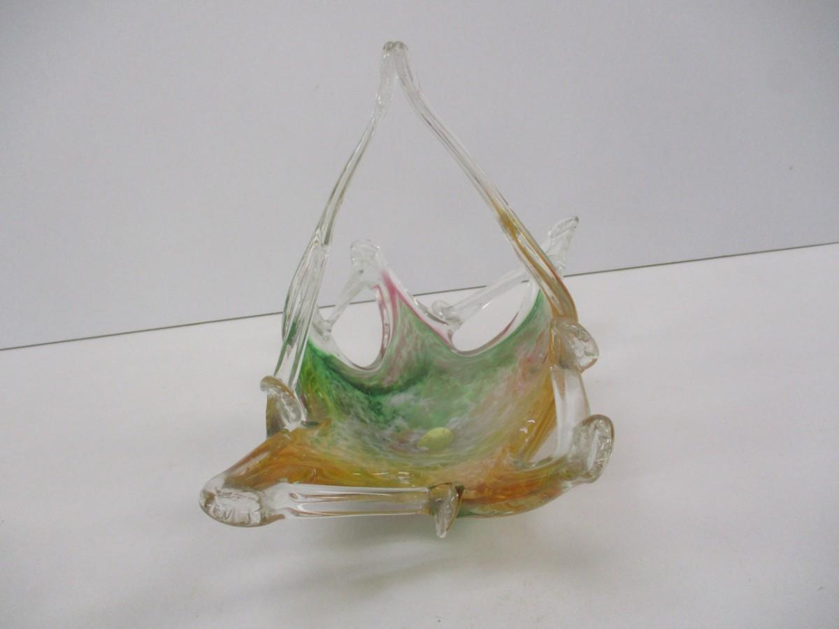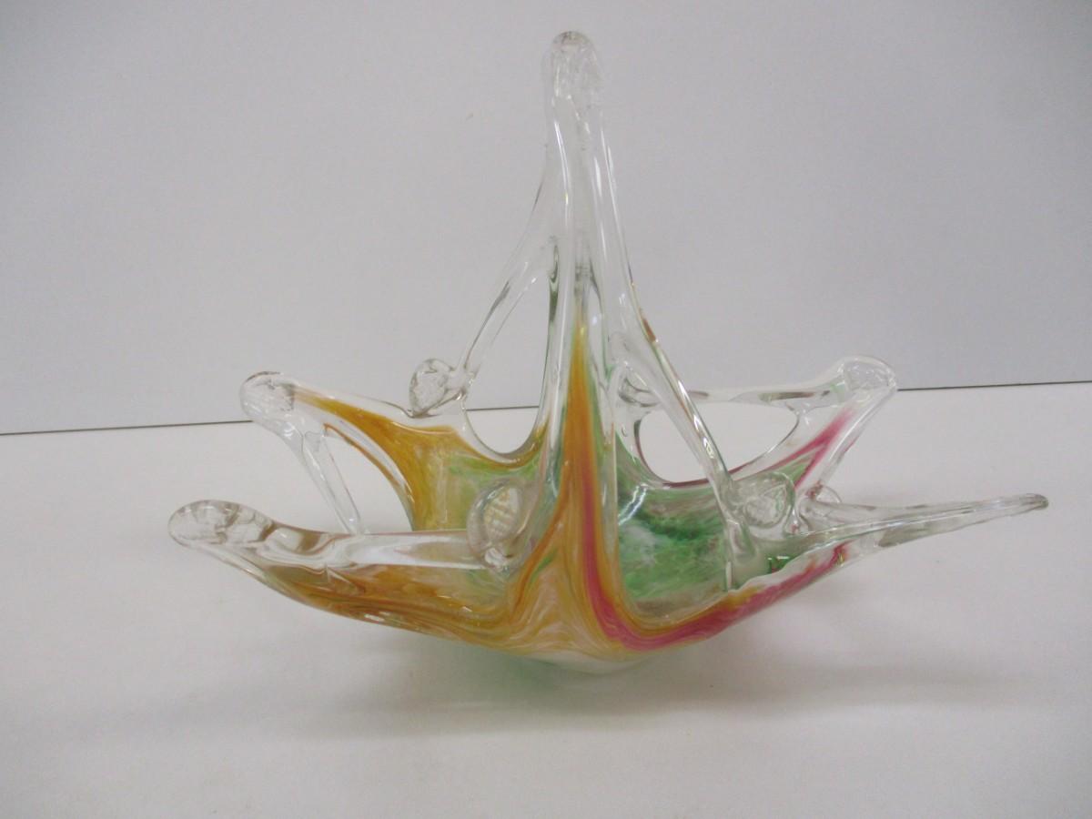 Murano Italy Martini Art Glass Wedding Favor Basket Approx 8" Tall