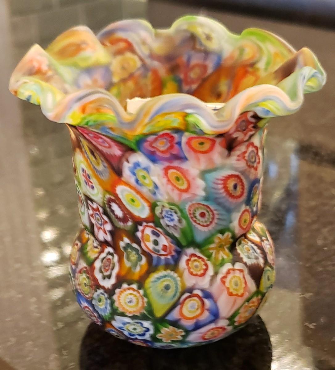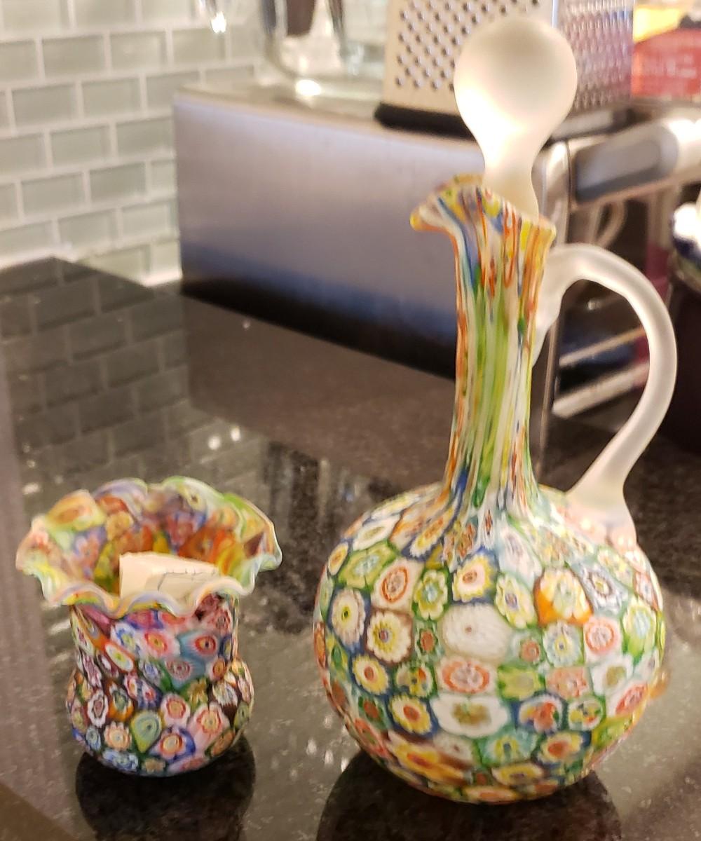 Murano Millefiori Mini Pitcher and Toothpick Holder Lot, Circa 1960