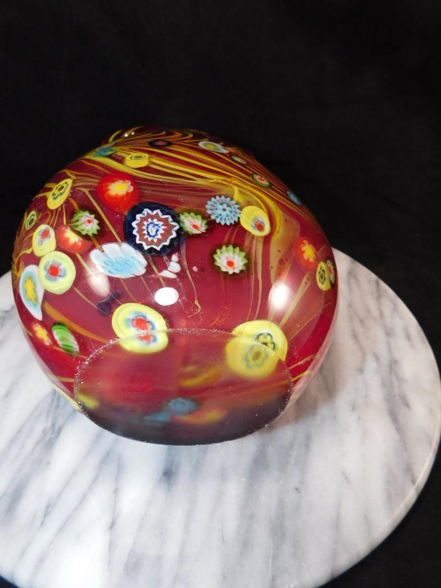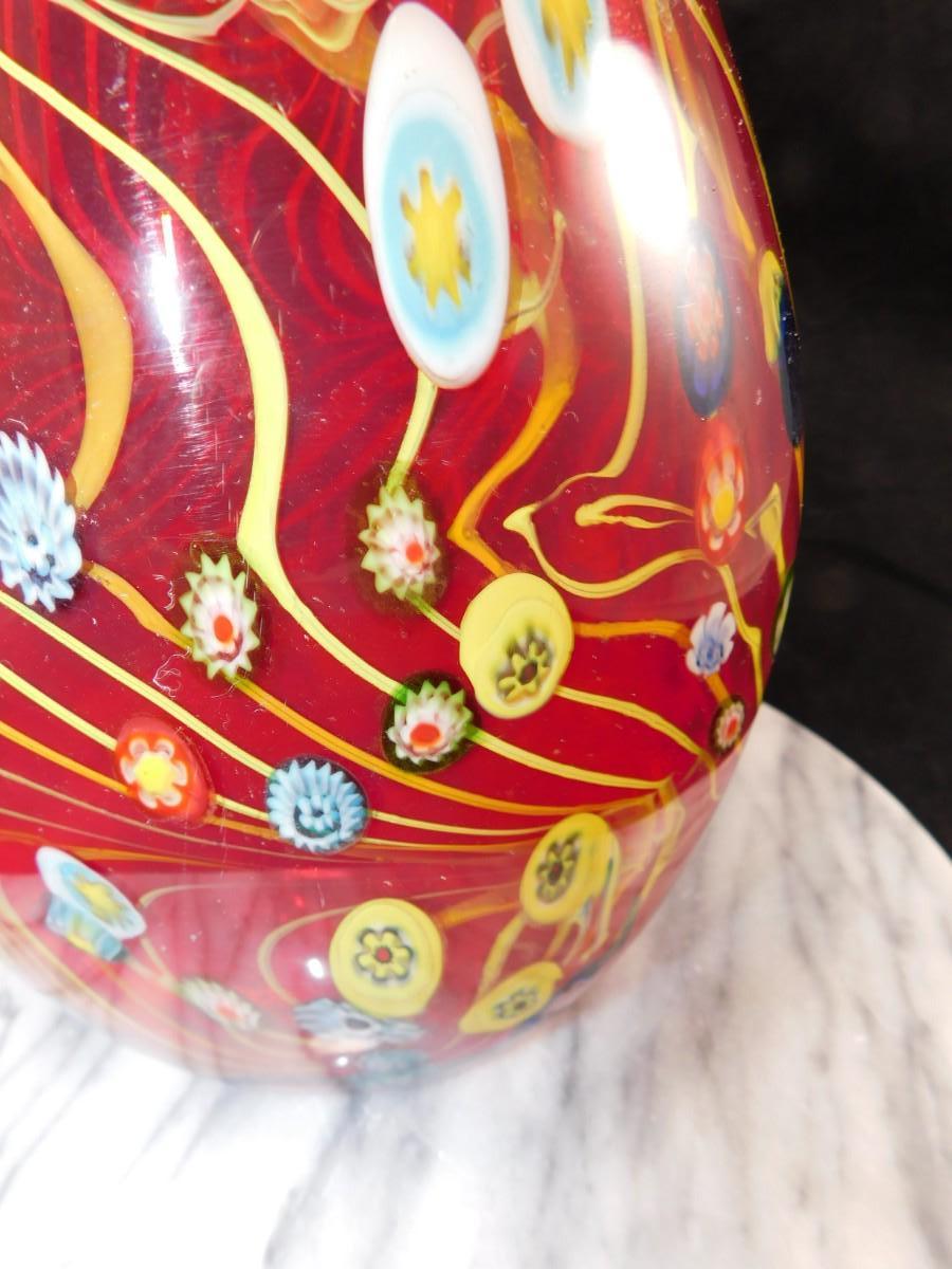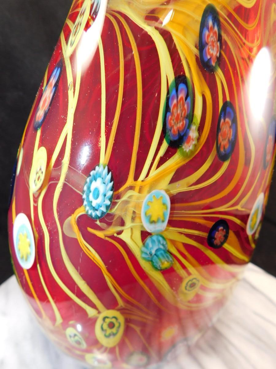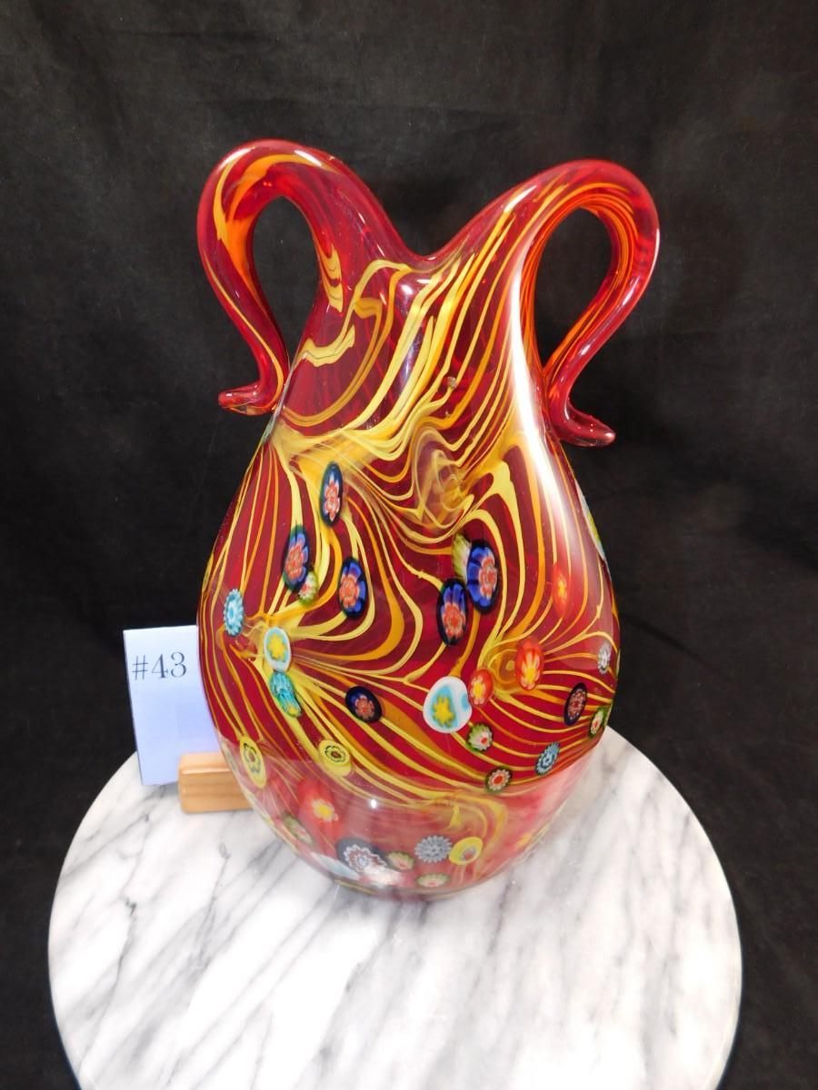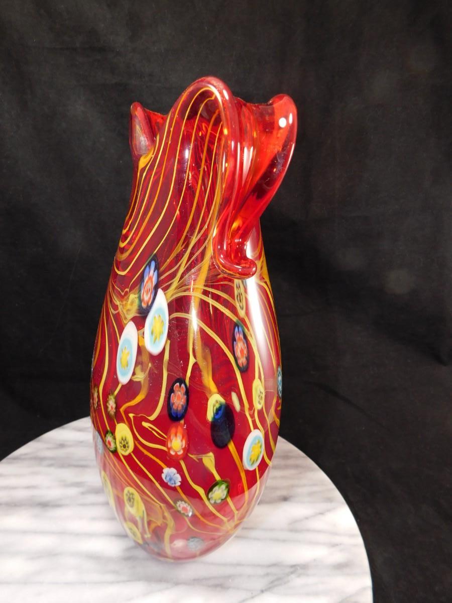 Murano Millefiori Pulled Feather 11" Double Handle Vase