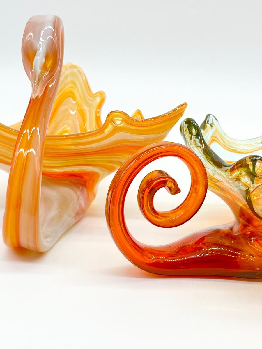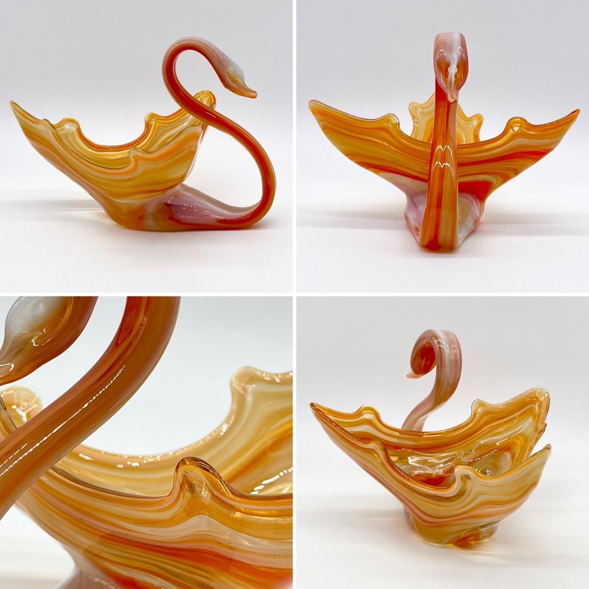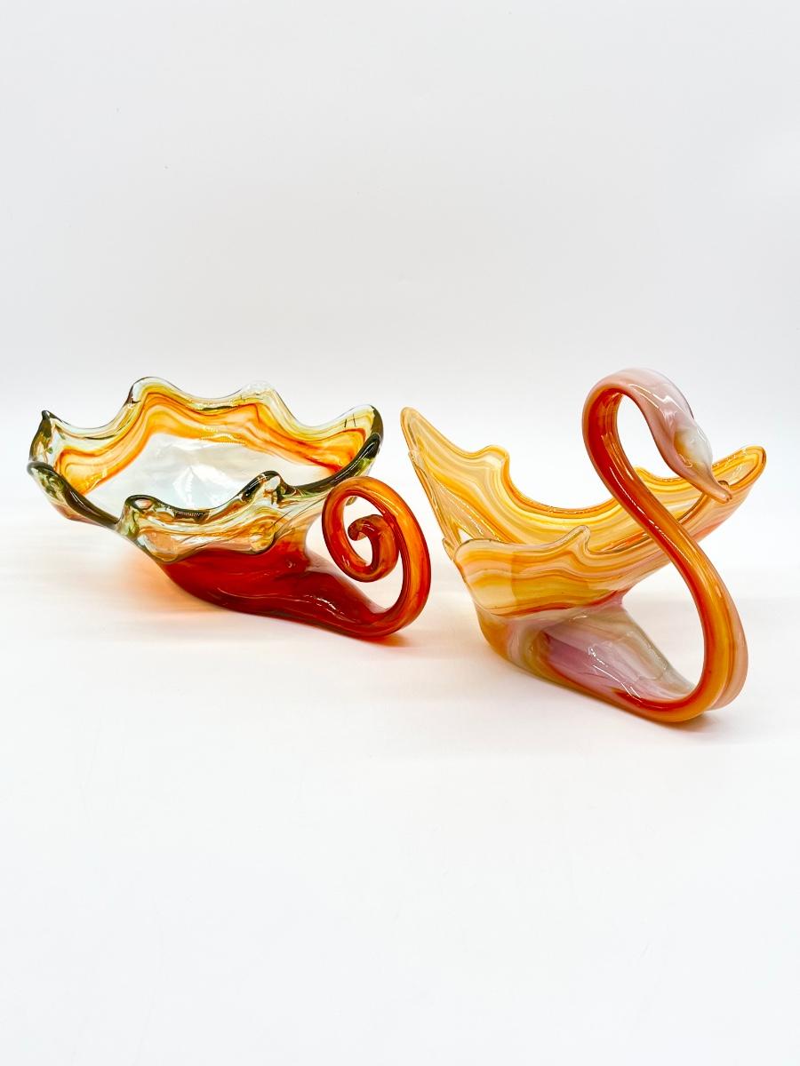 MURANO ~ Pair (2) ~ Art Glass Swan & Sleigh Bowls