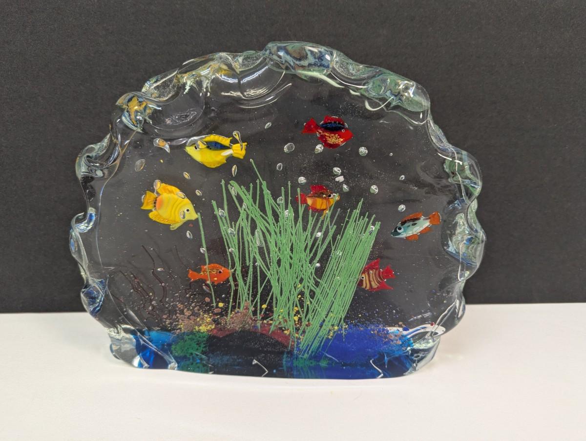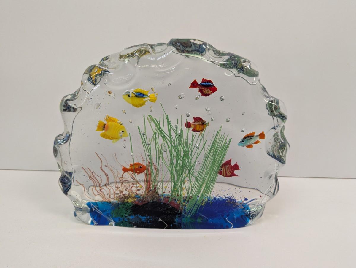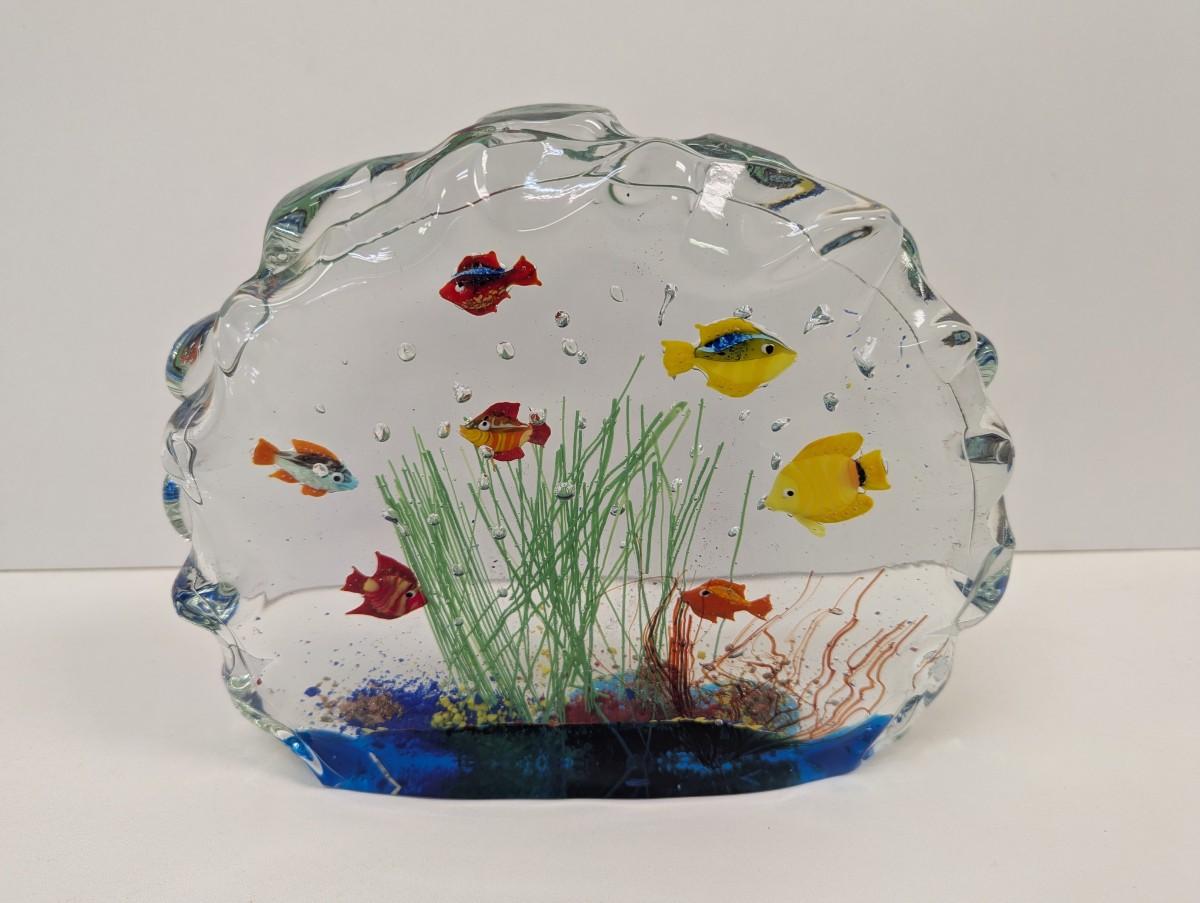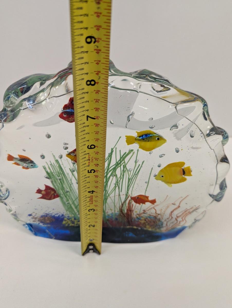 Murano Hand Blown Solid Art Glass Aquarium With Fish Plants & Bubbles Approx 8 1/2" Tall