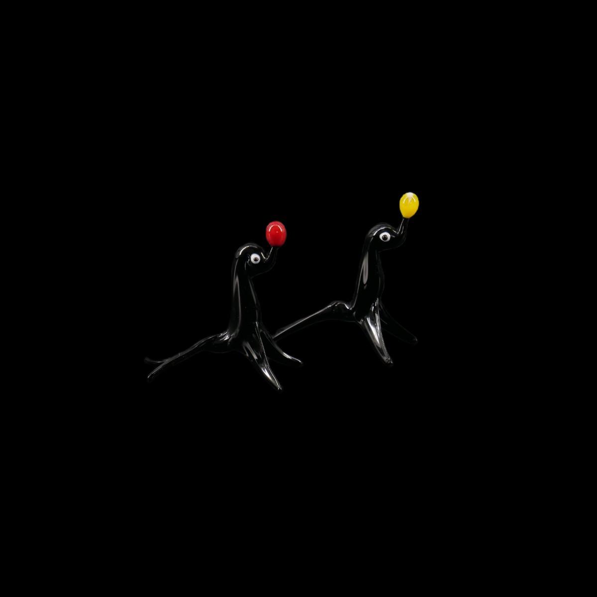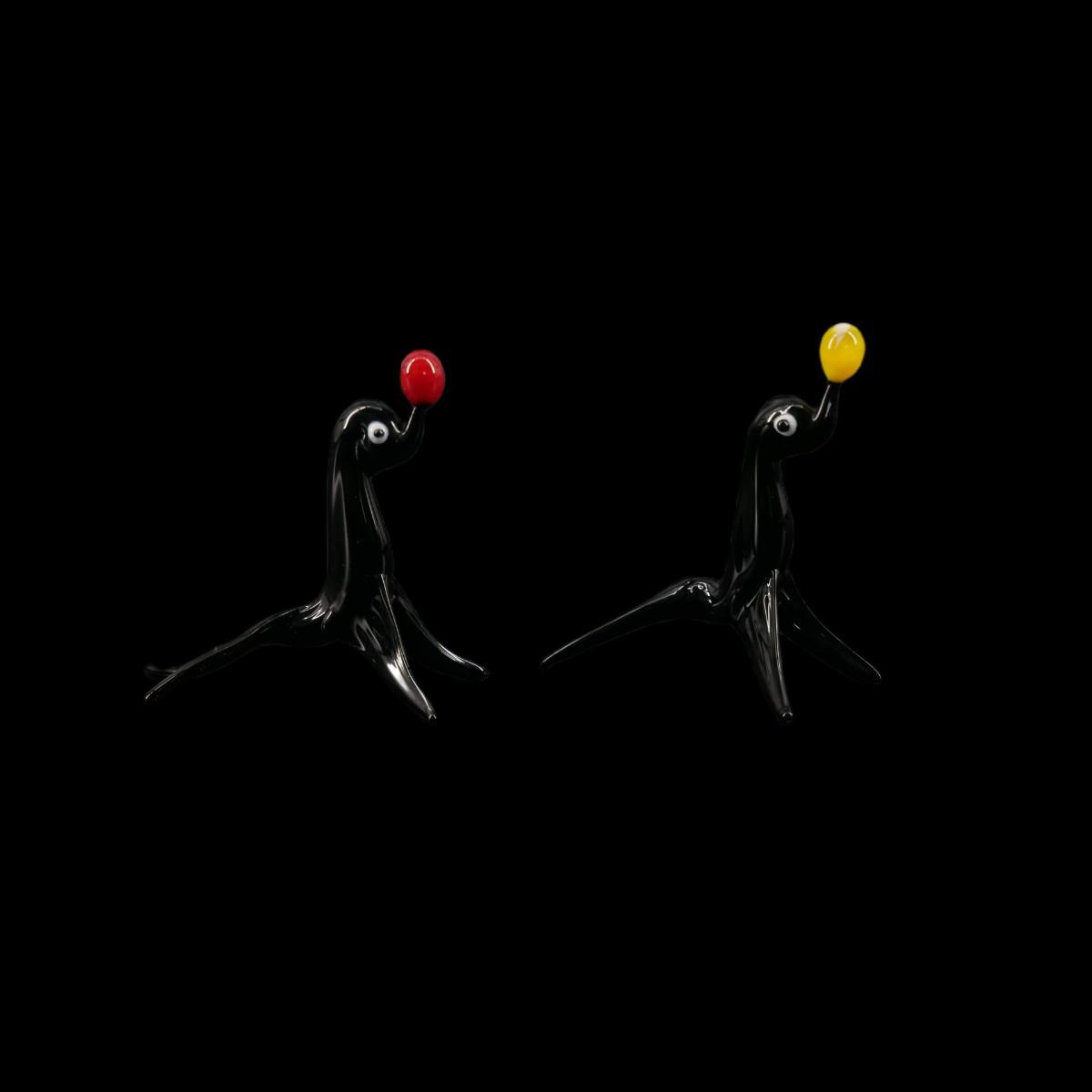Murano style small hand blown glass seals with beach balls. Each measures approximately L 2.25" x H 2.75" x W 1.5". Lot weighs 0.7 oz. (C23)