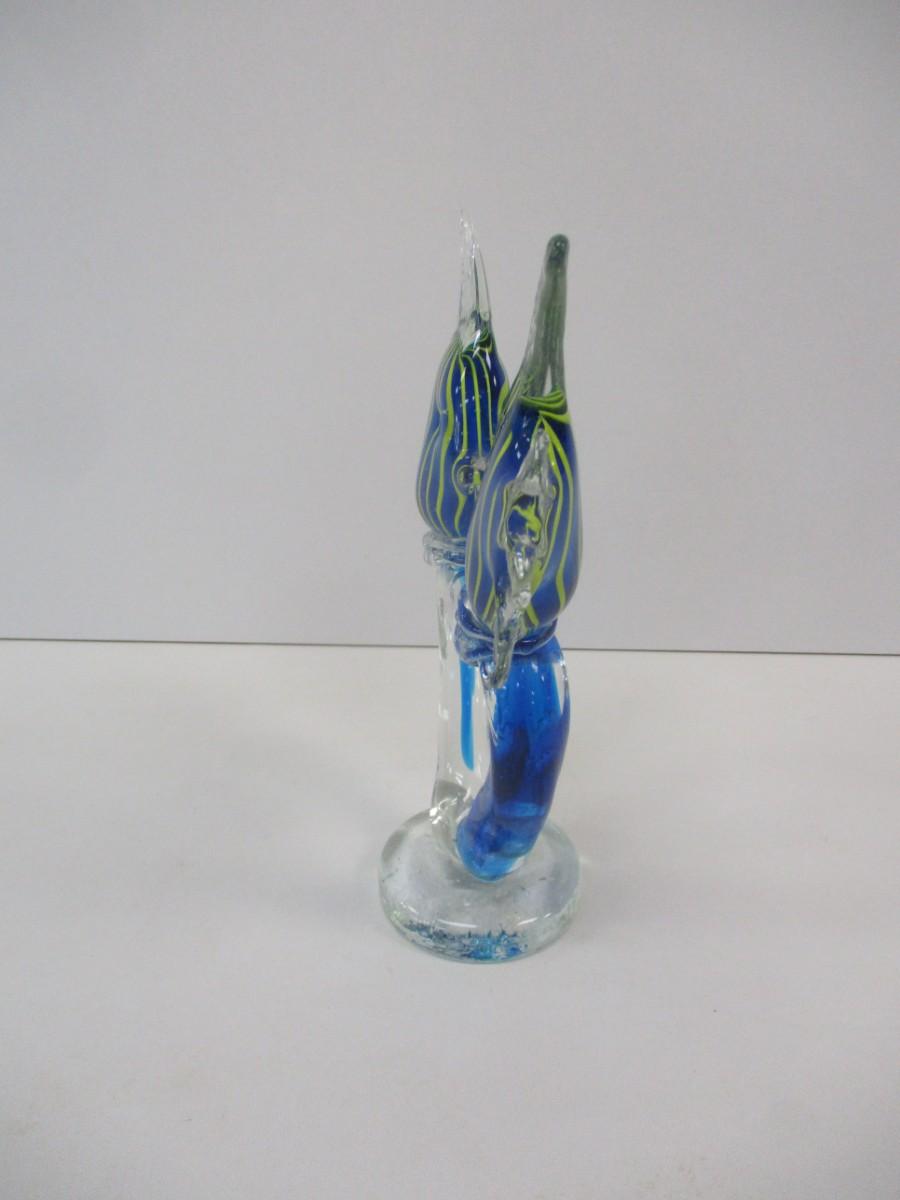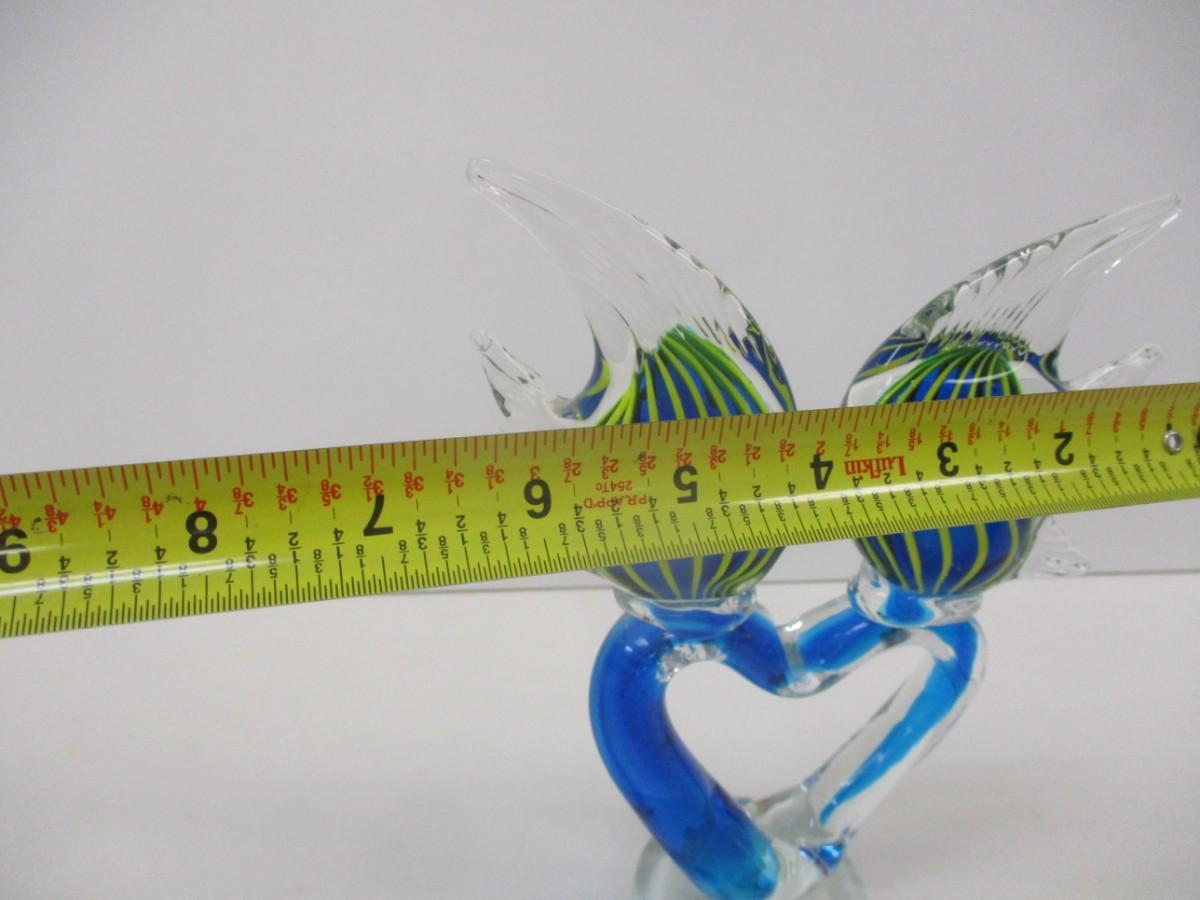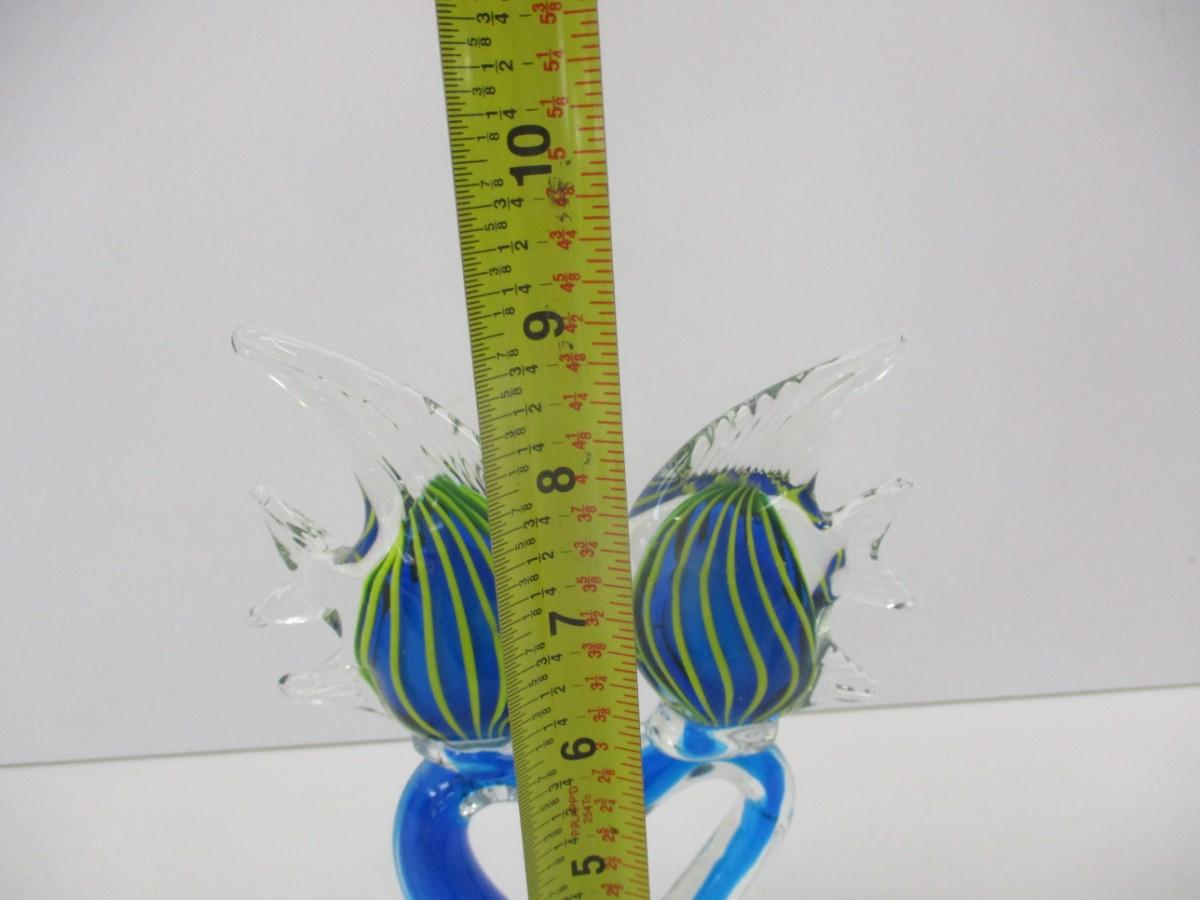 Murano Style Hand Blown Art Glass 2 Angel Fish Approx 9 1/2" Tall