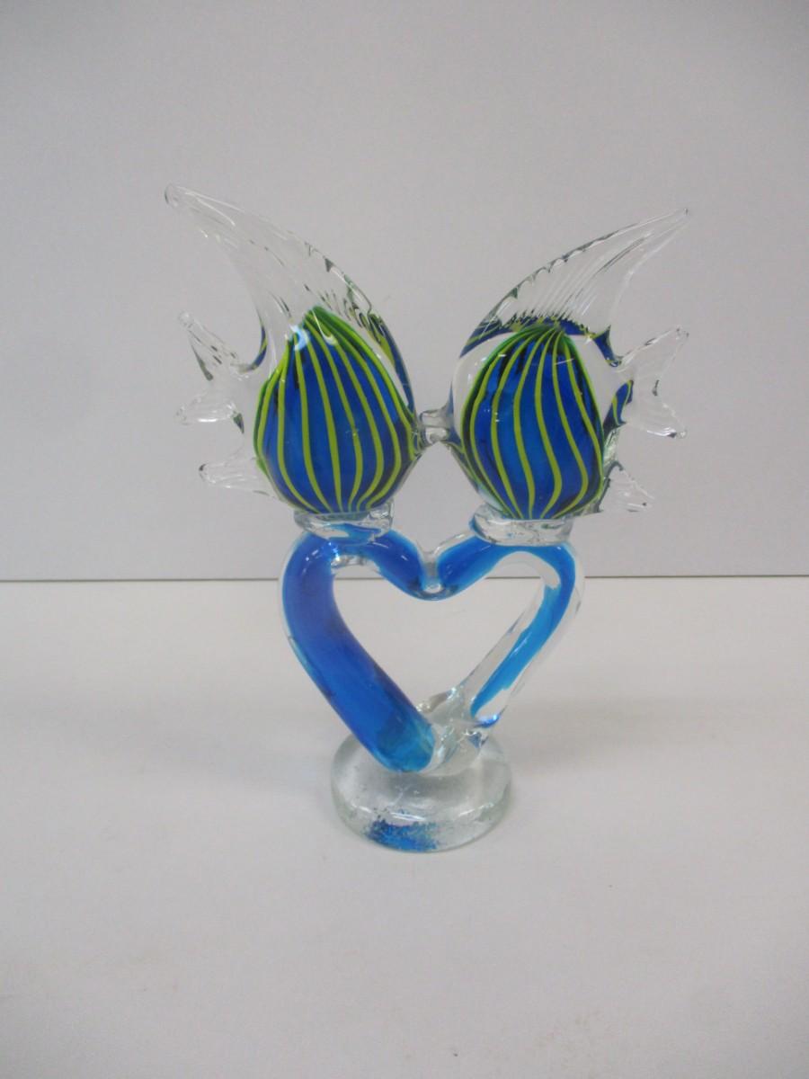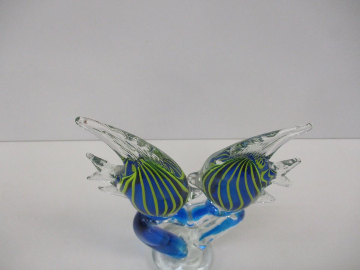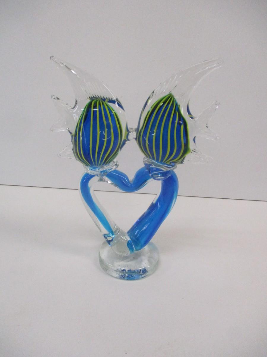 Murano Style Hand Blown Art Glass 2 Angel Fish Approx 9 1/2" Tall