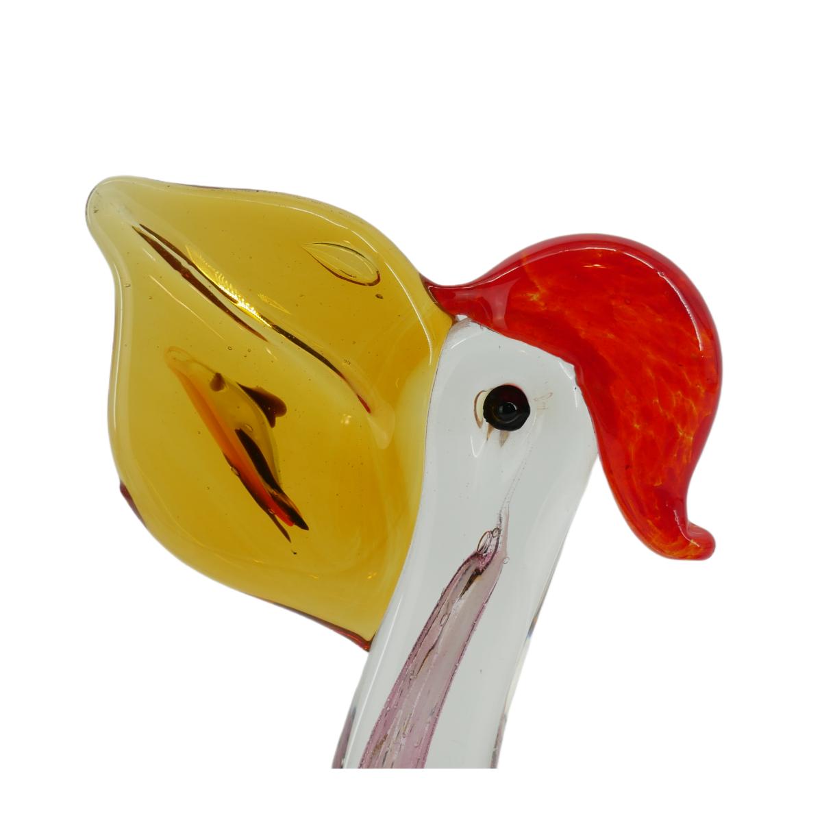 Murano Style Hand-Blown Glass Art Pelican with Fish