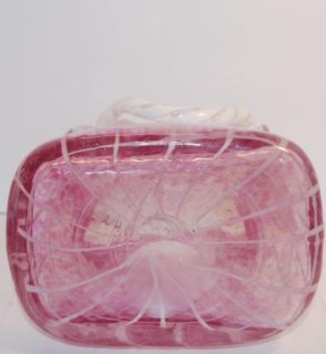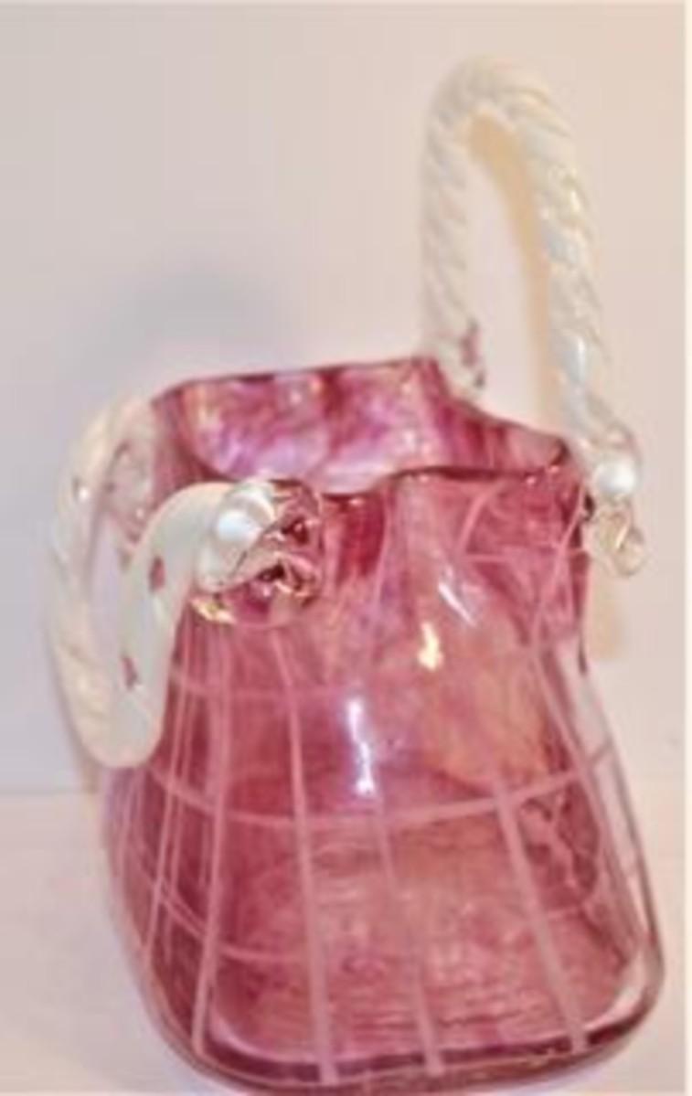 "Murano-Style" All Glass Cranberry Basket with Up & Down Handles 9 1/2" H x 7" W x 5" D Very Fragile and Heavy
