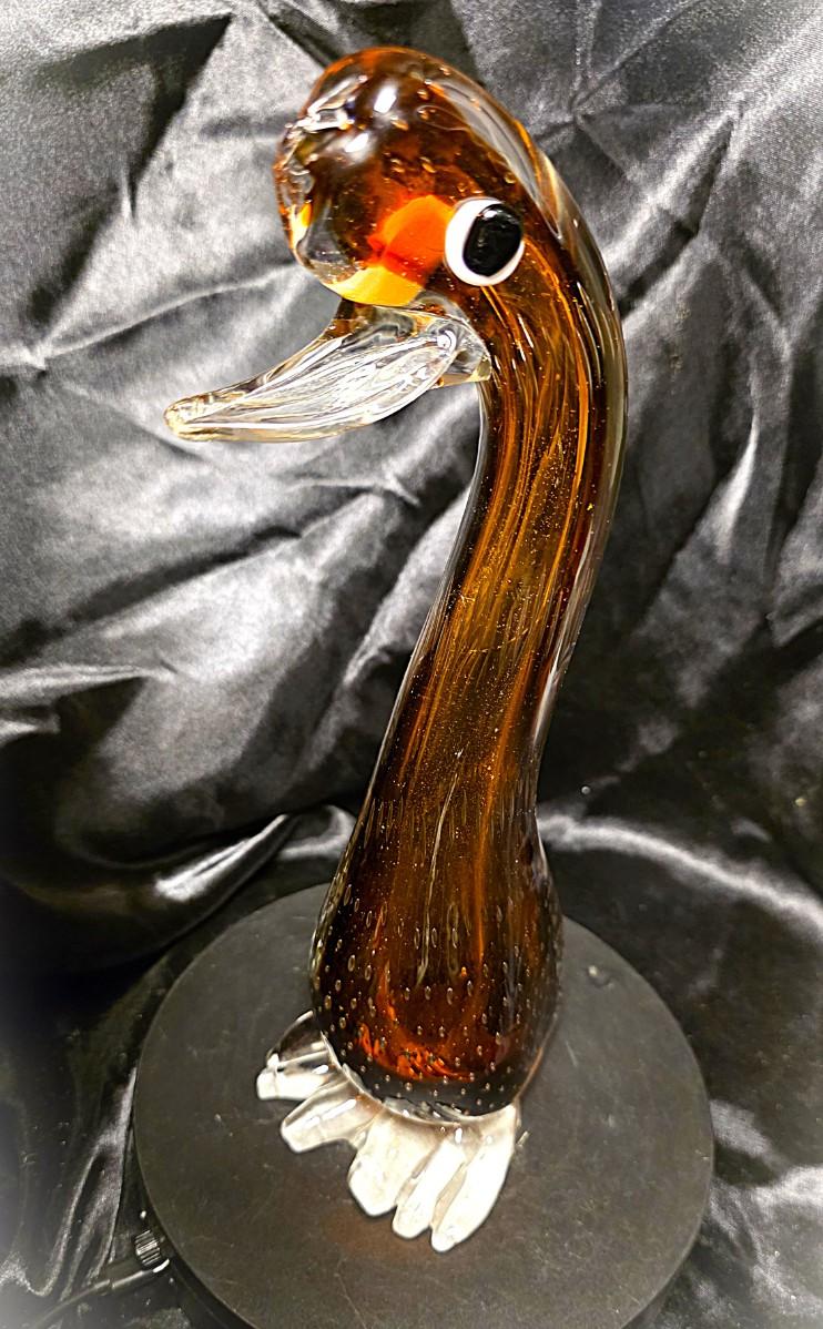 While this piece reflects Italian Murano aesthetics, similar works were also produced by respected American studios during the same period. There is no visible maker’s mark, allowing the sculpture to stand on its own visual merit rather than a label. Whether displayed as a focal point on a shelf, nestled among curated glass, or gifted to a collector who appreciates form and technique, this duck offers both artistry and quiet charm.