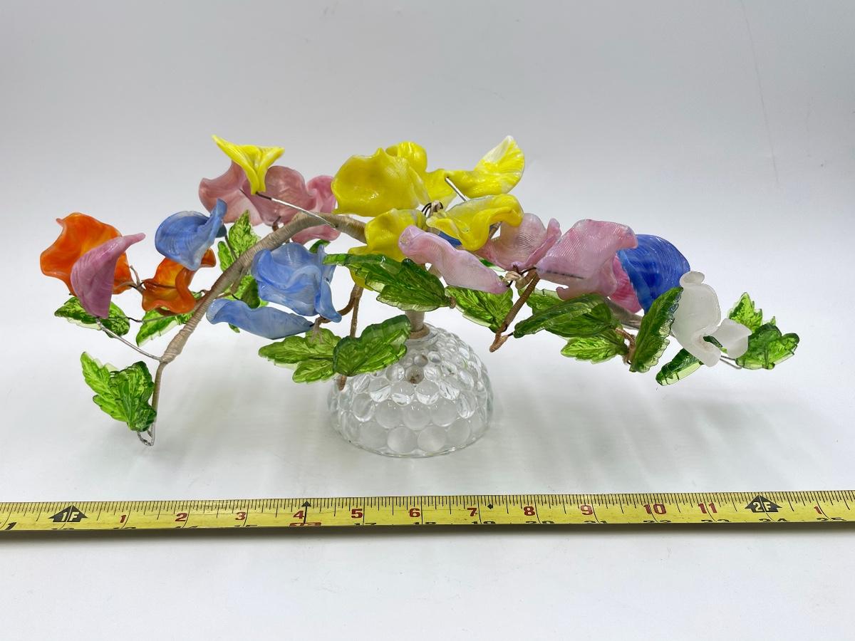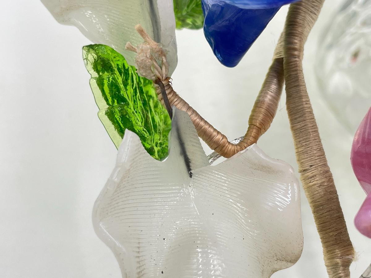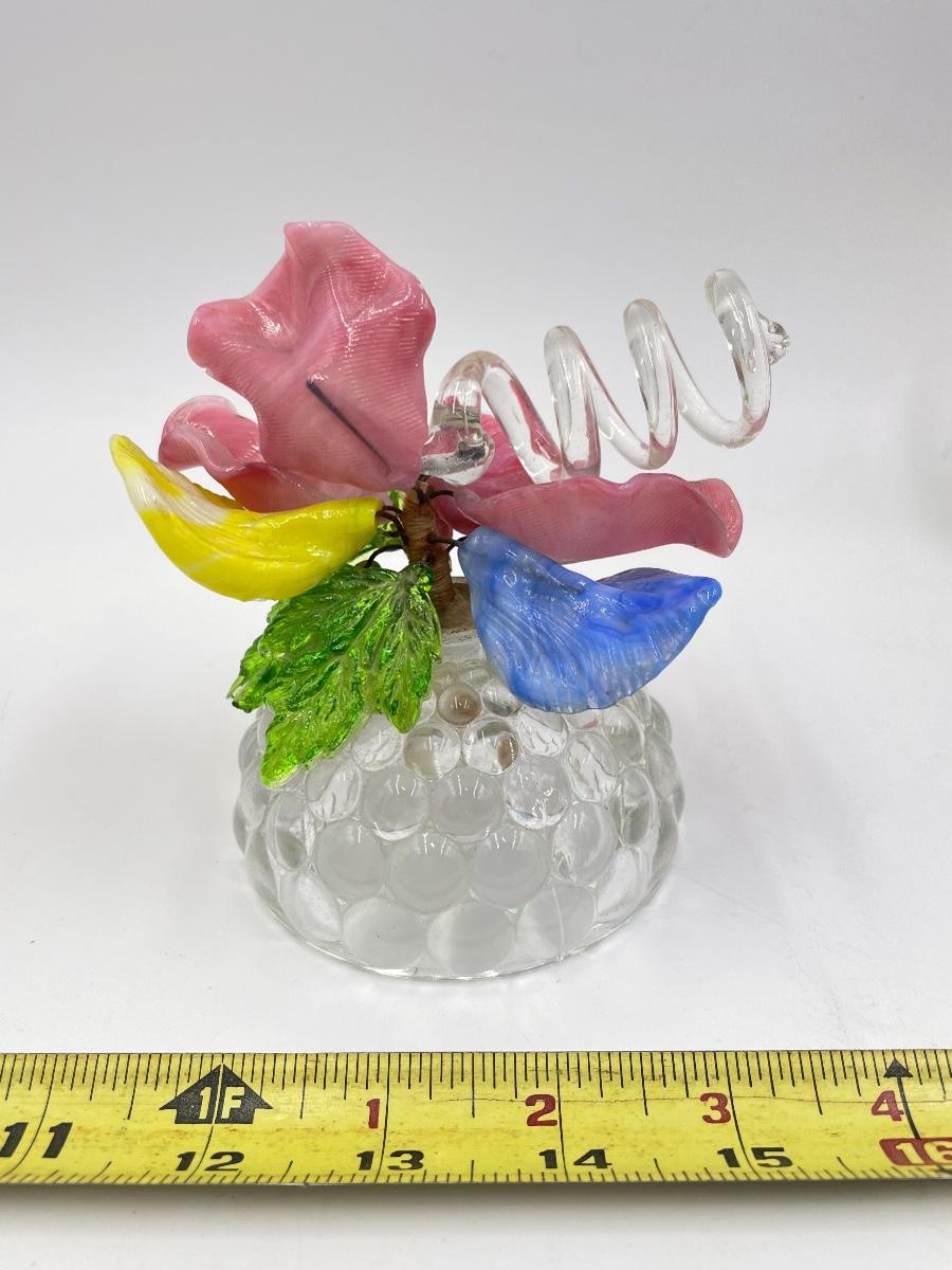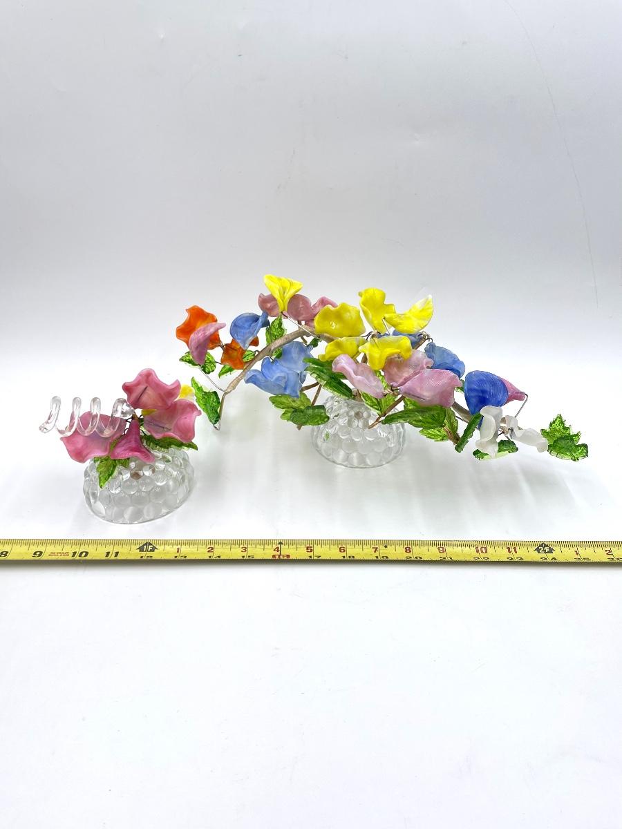 MURANO/VENETIAN GLASS COLORFUL FLOWER DECORATIONS SET OF 2