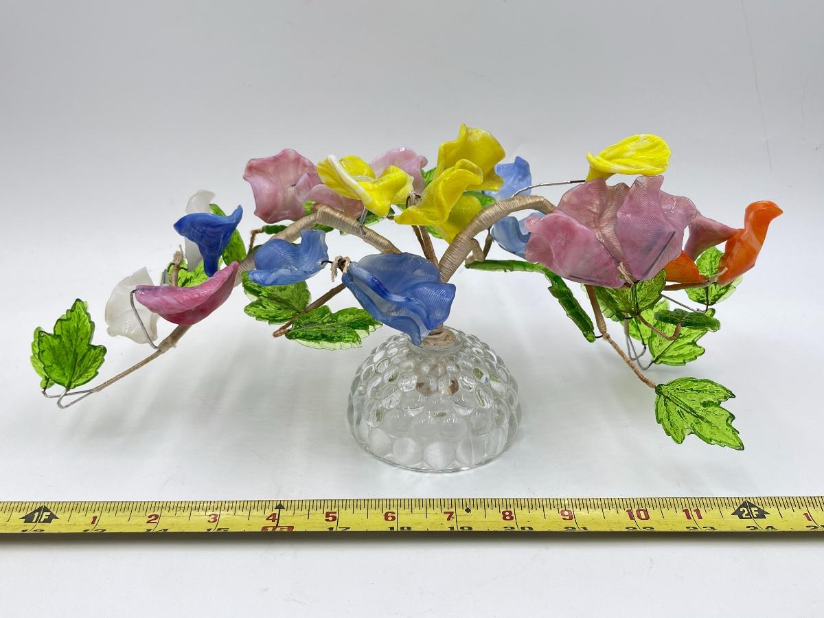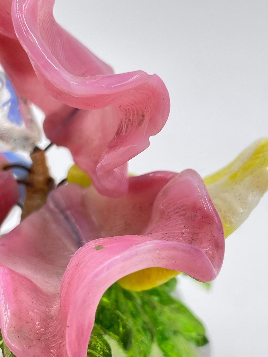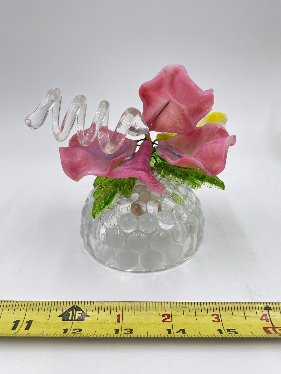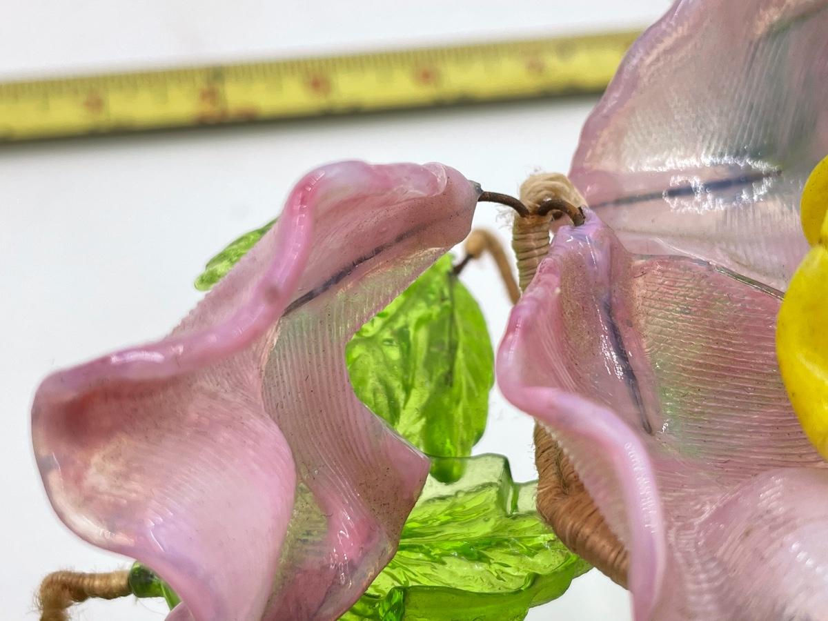 MURANO/VENETIAN GLASS COLORFUL FLOWER DECORATIONS SET OF 2