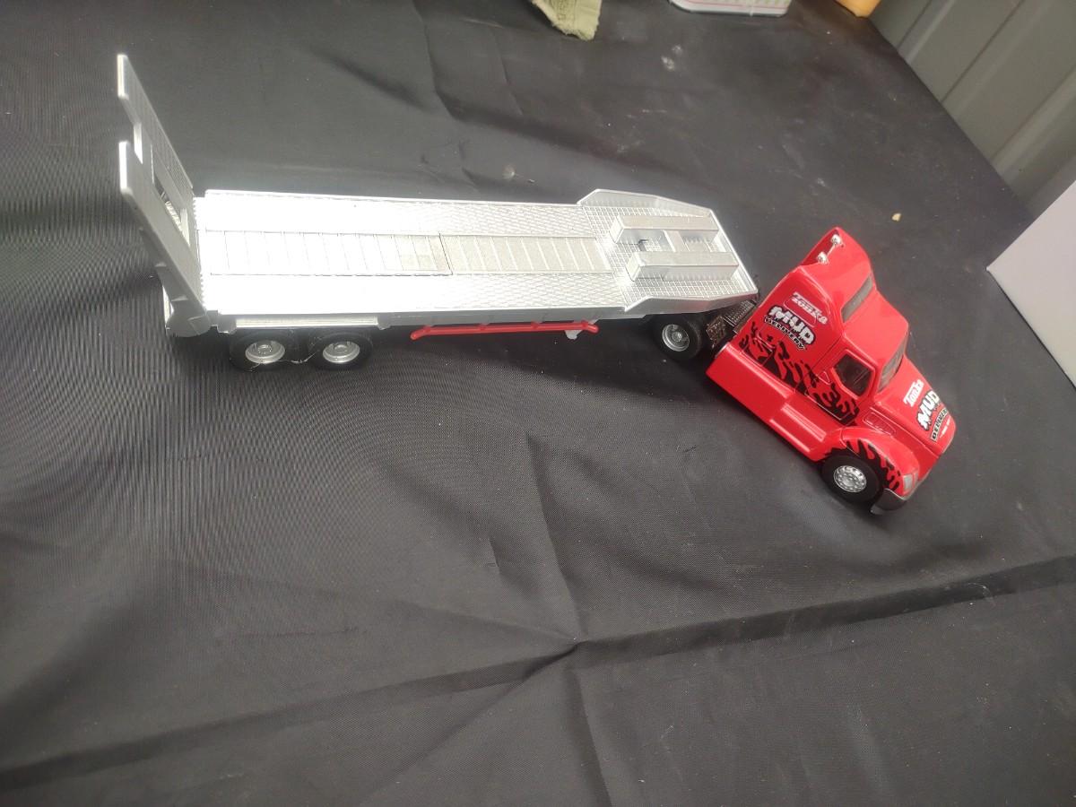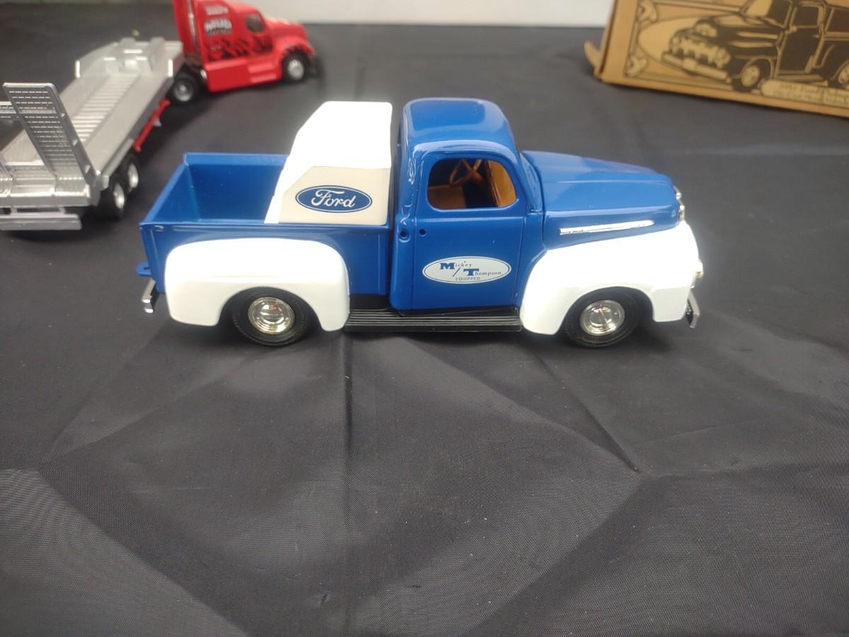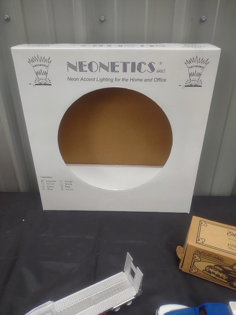 MUSCLE CAR NEON CLOCK, '51 FORD PICKUP DIE CAST MODEL AND A TONKA TRACTOR TRAILER