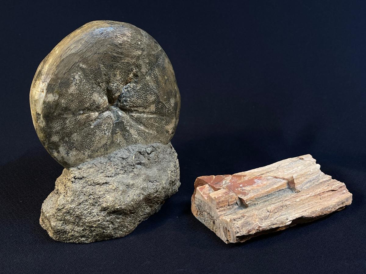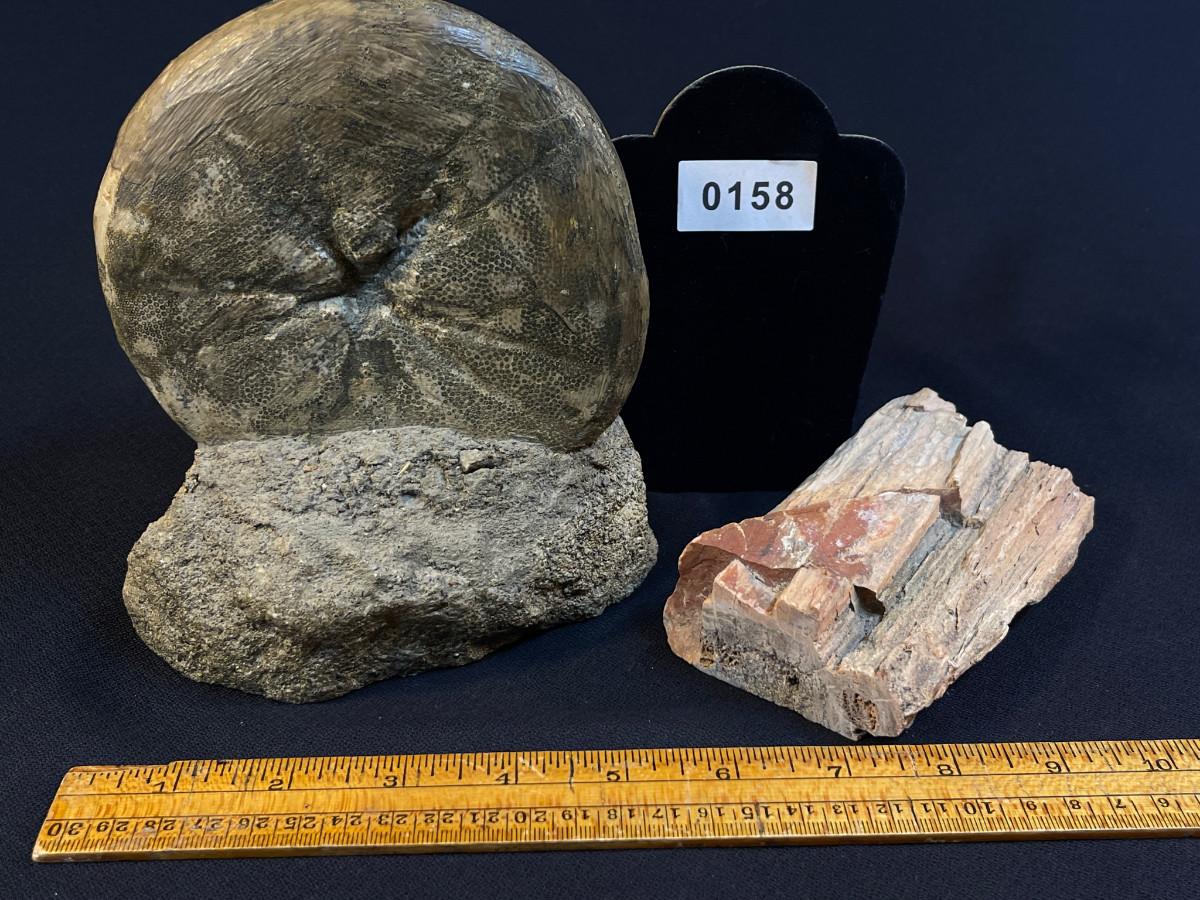 Museum Quality Sea Urchin fossil and Petrified Wood