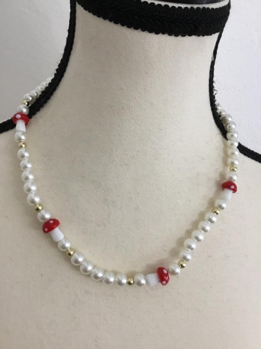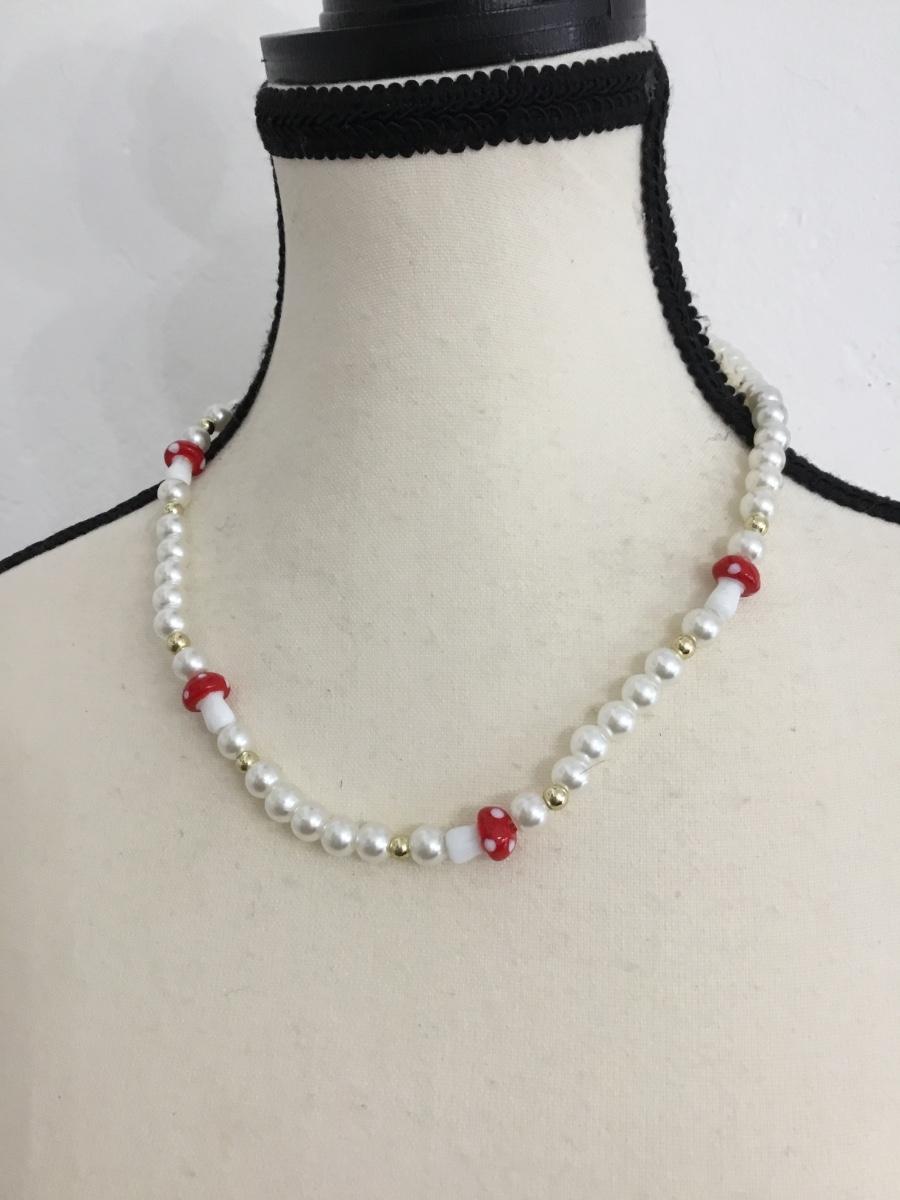 Mushroom beaded collar necklace