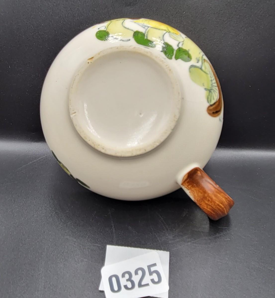 Unknown maker. Found a few close possibilities but not able to confirm. No chips, cracks, or other damage. Crazing shown to be under glaze Showing multiple views to indicate the crazing seen.