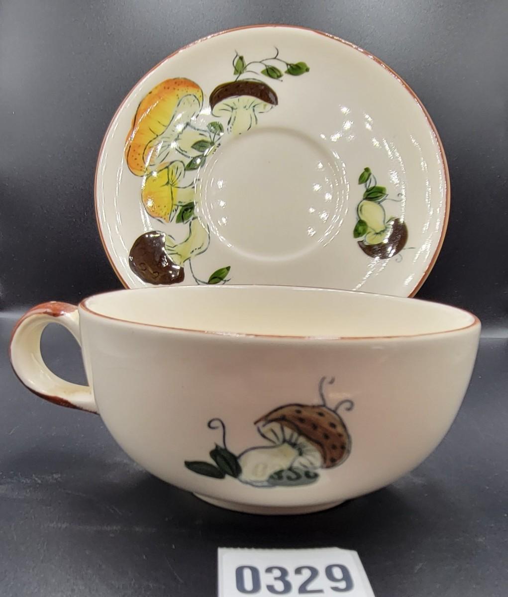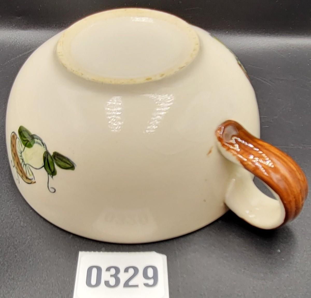These are in great shape with no cracks, chips, or other damage seen. Unable to locate Maker of these items through search. Some crazing seen on the bottom of the plate under the glaze as well as on the outside of the bowl near the handle. Photos enlarged to help show the extent of the crazing.