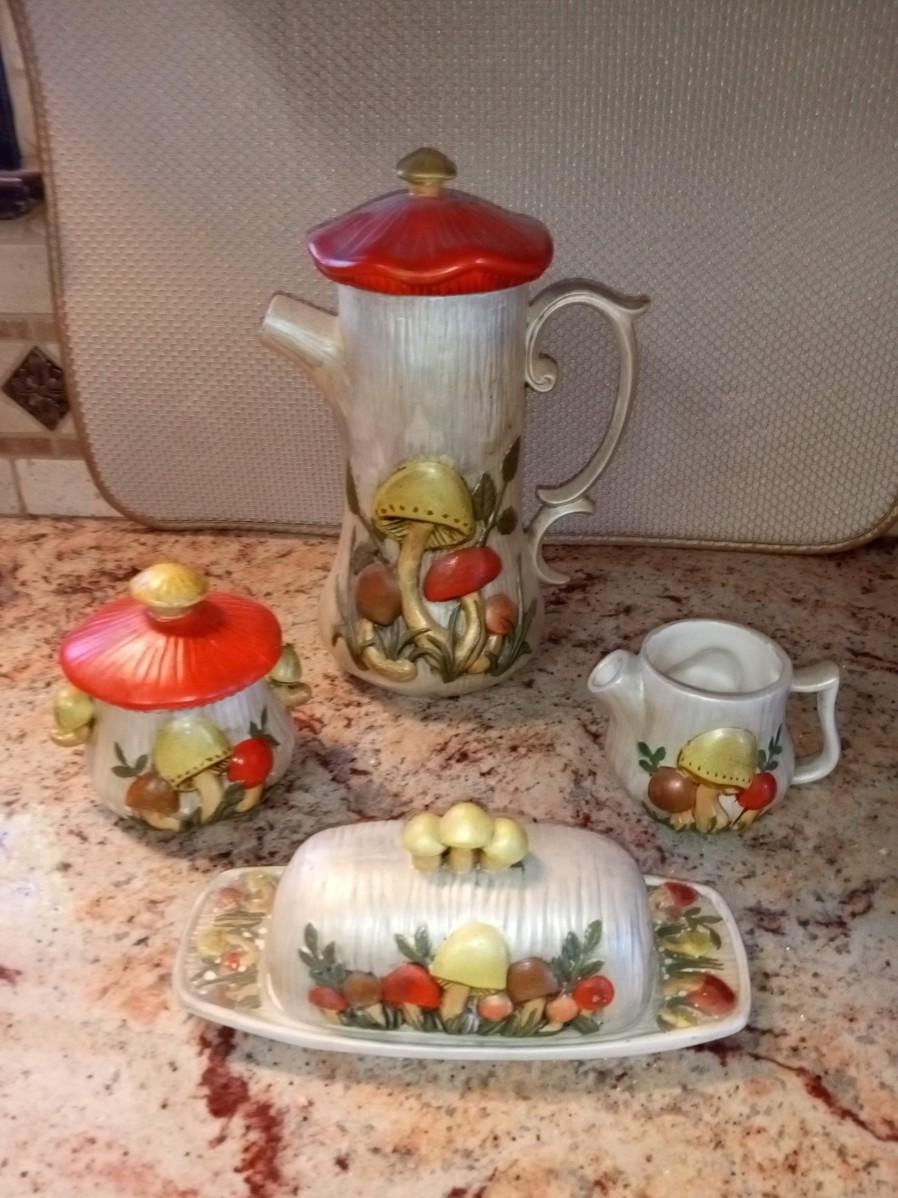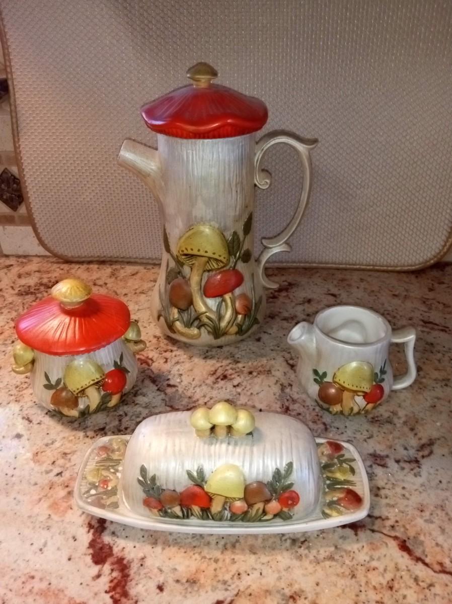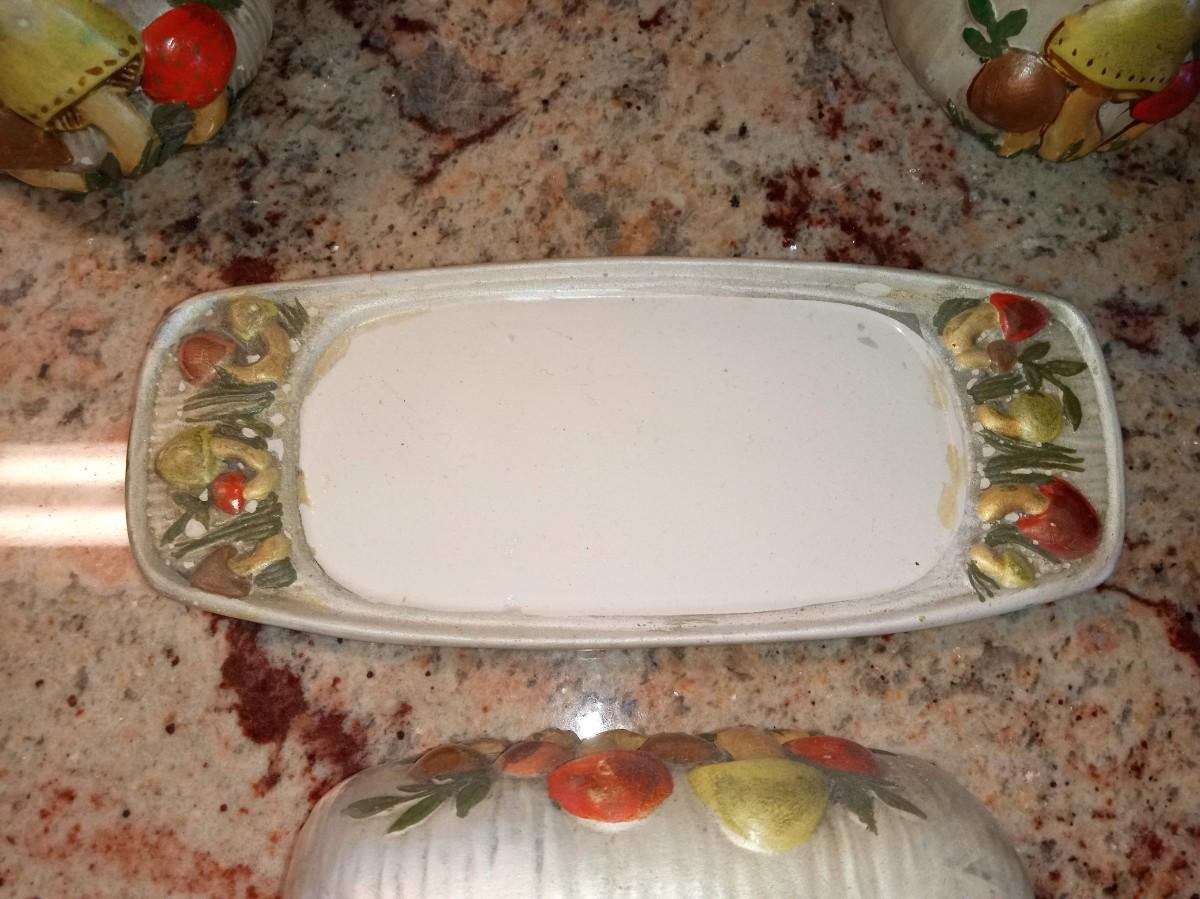 THE PITCHER IS APPROX 11" TALL, THE BASE OF THE BUTTER DISH HAS SOME LOSS OF PAINT