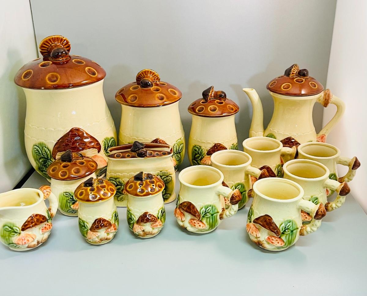 Large collection of vintage goodness- some discolored spots, crazing, signs of use age and wear. Needs cleaning and there may be a few small flea bites, but I saw no chips. I will not ship this set for fear of breakage. It’s an amazing set. Made in Japan.
