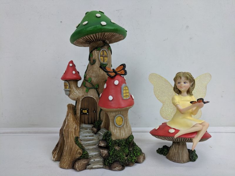 Mushroom Valley Cottage W/ Miranda Statues - Chipped
